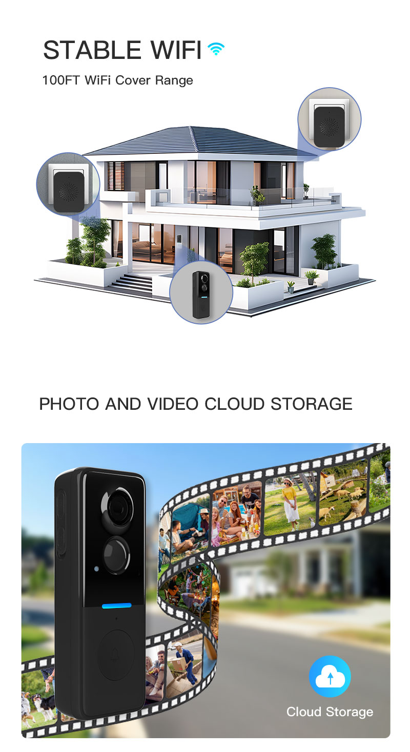 6. Stable Wire-Free WiFi Connectivity with 100ft coverage for remote access and live video surveillance via your phone.