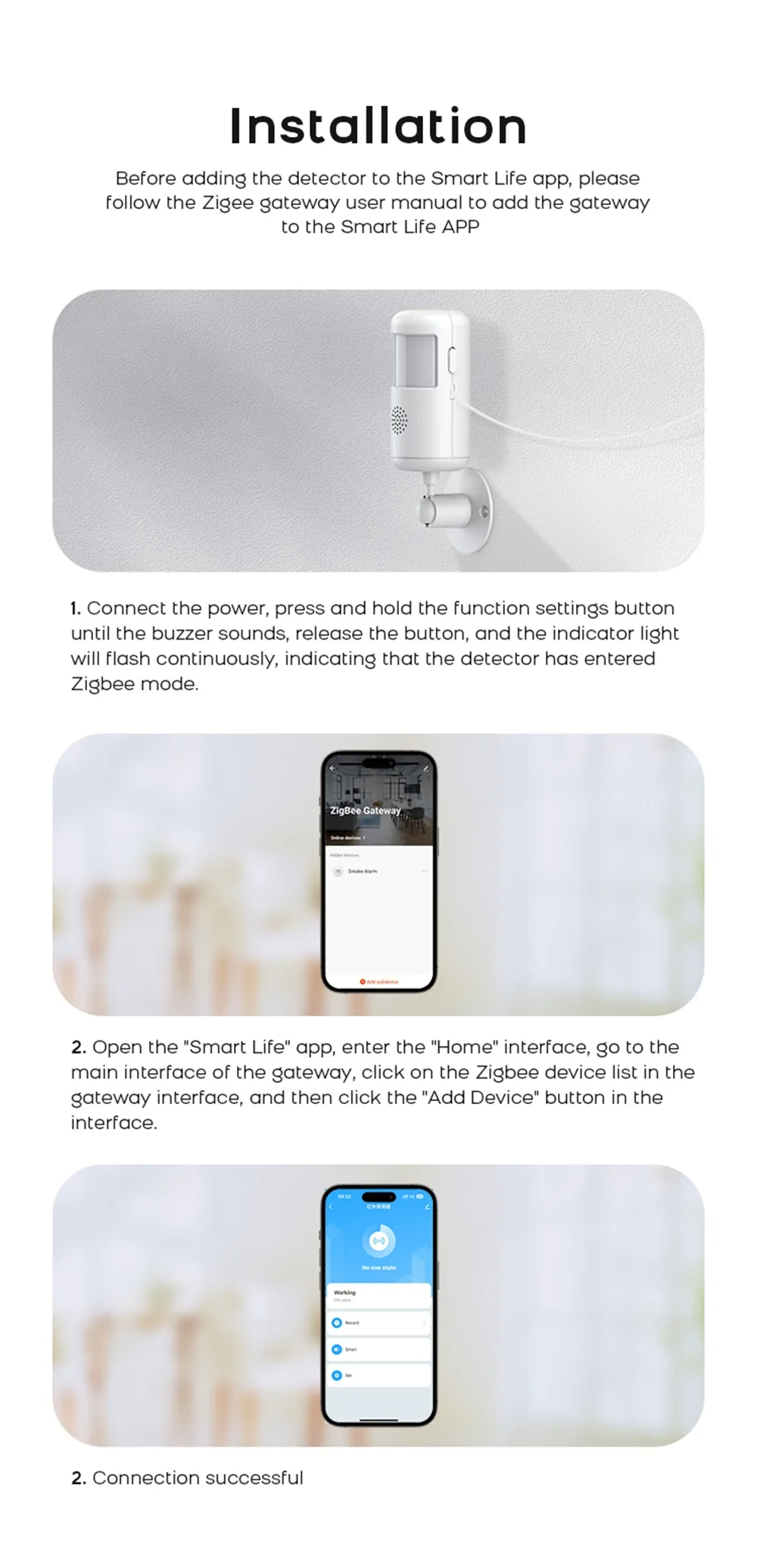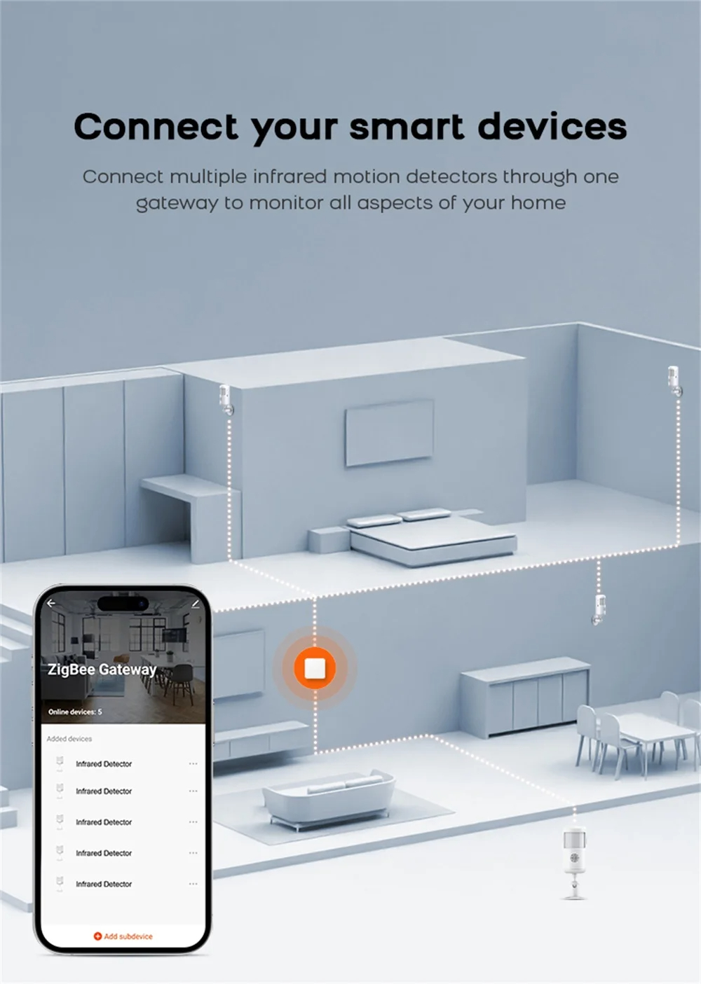 5. Expandable Zigbe Network: Connect multiple sensors via a single Zigbe gateway for comprehensive home monitoring.