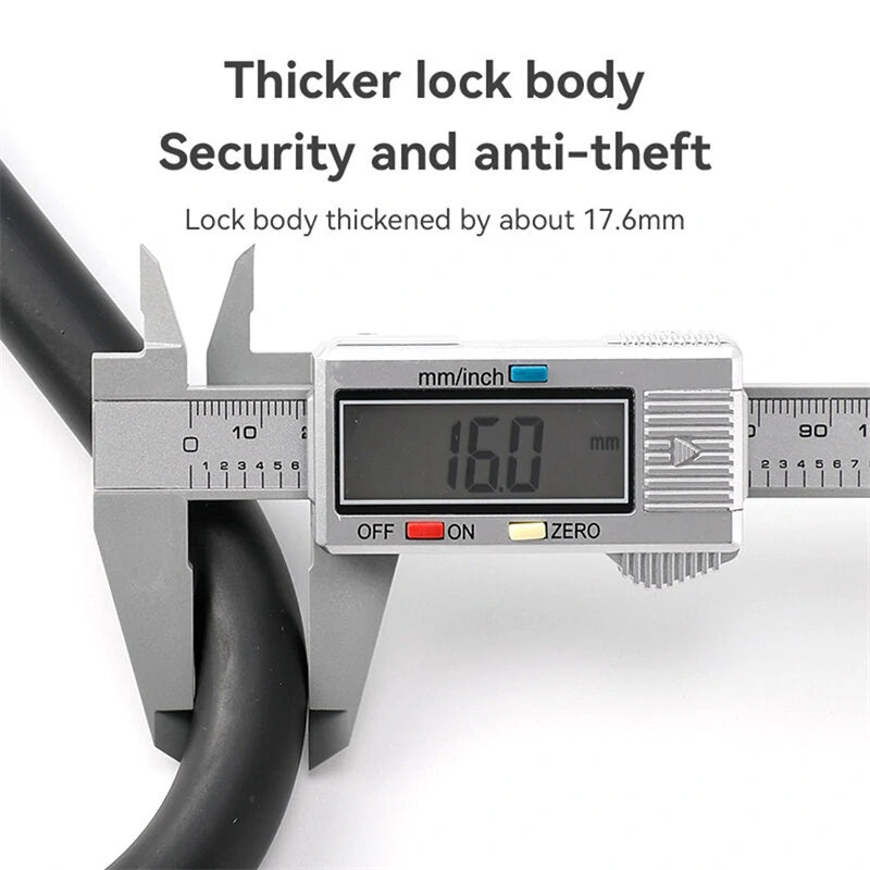 1. Thickened Lock Body: With a thicker lock body of approximately 16mm, this U-lock provides added security to prevent theft.