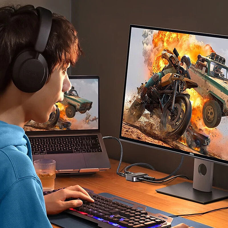 1. High Definition Compatibility: The switch supports resolutions up to 8k @60Hz and 4k @120Hz ensuring sharp and crisp visuals.