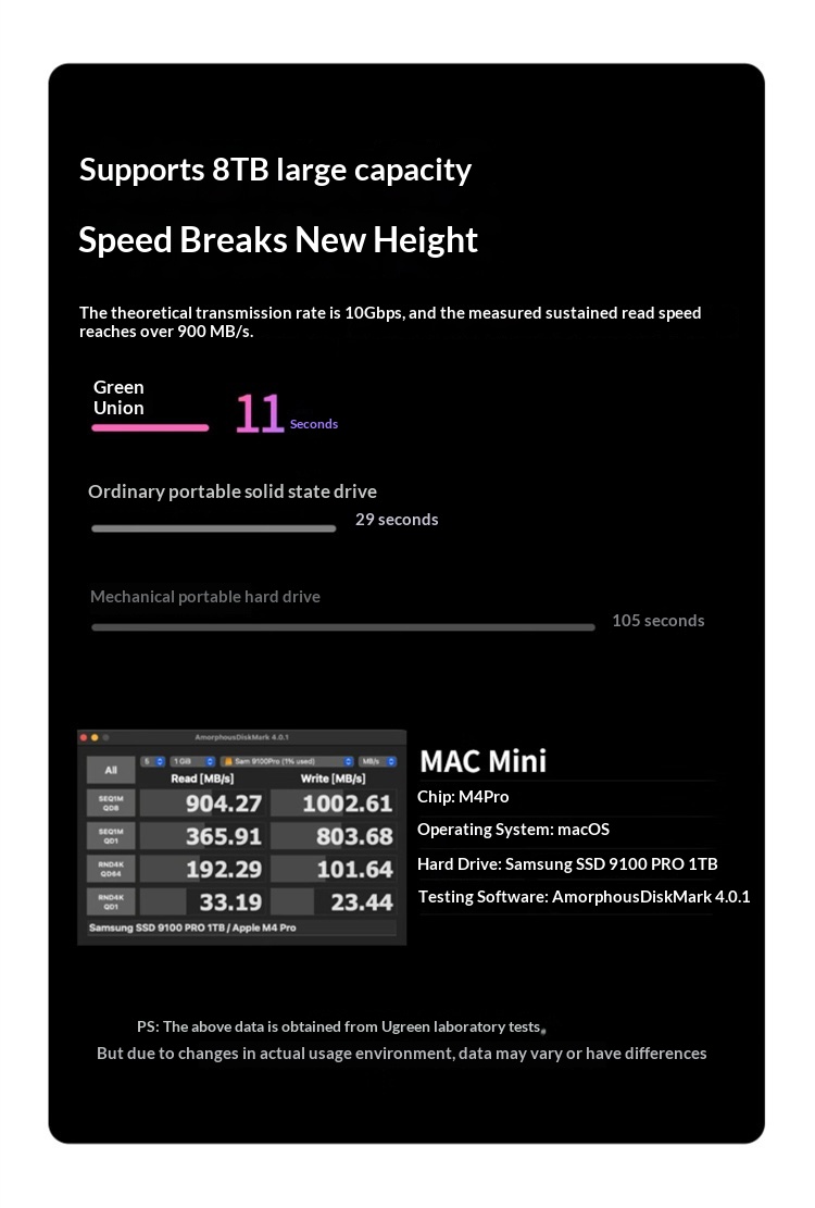 1. High-Speed Transmission: Supports 10Gbps transfer rates, ensuring quick file transfers such as 1GB files in approximately 1 second.