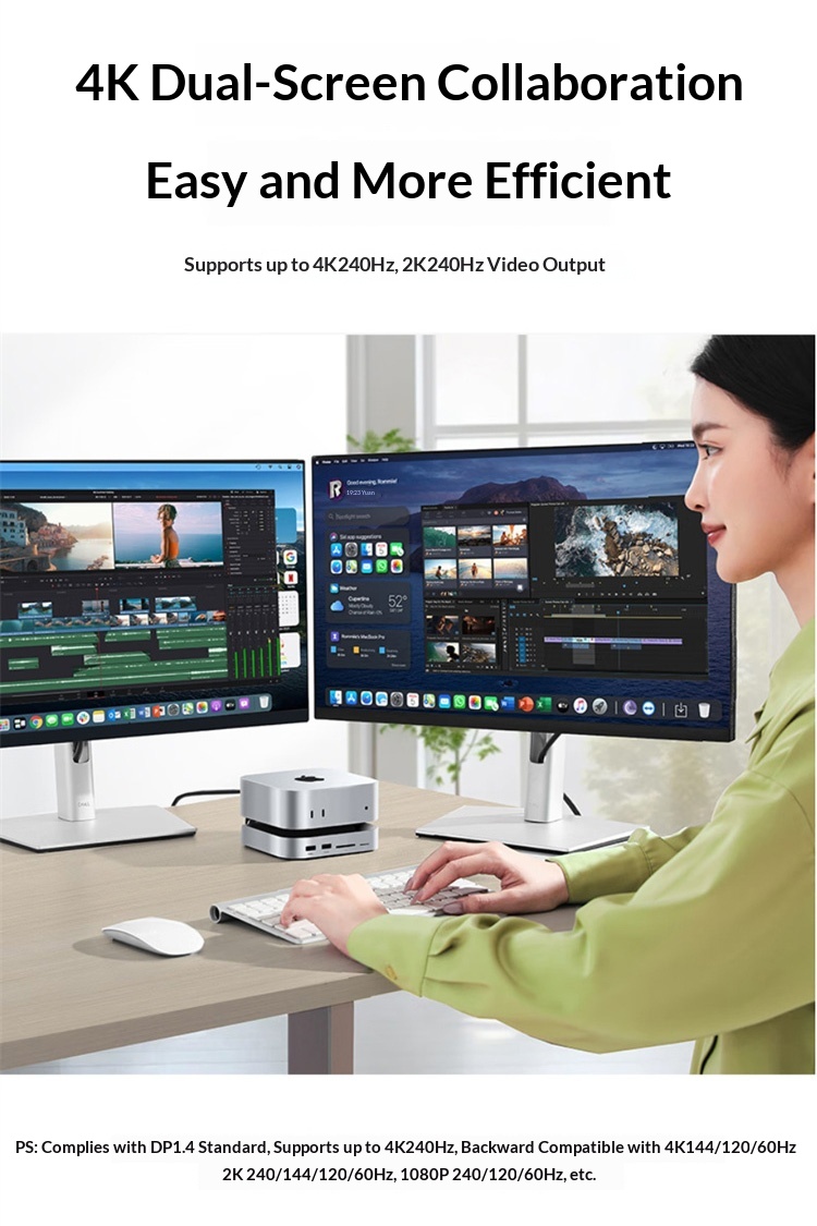 4. Enhanced Visual Display: Capable of dual-screen setup with support for 4K240Hz and lower resolutions, delivering high-quality video output.