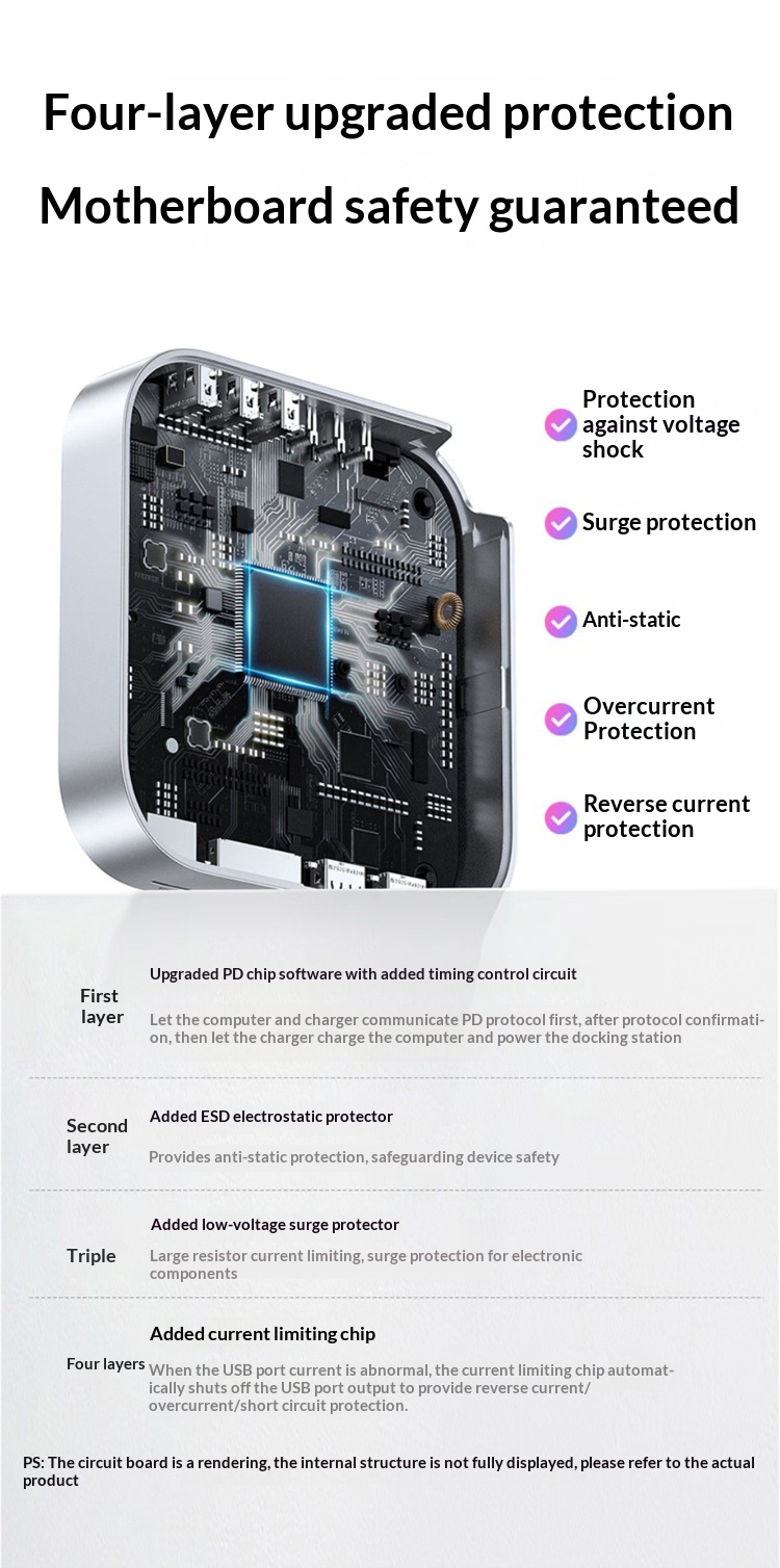 5. Advanced Protection: Features quadruple protection including safeguards against voltage spikes, static electricity, overcurrent, and reverse current.