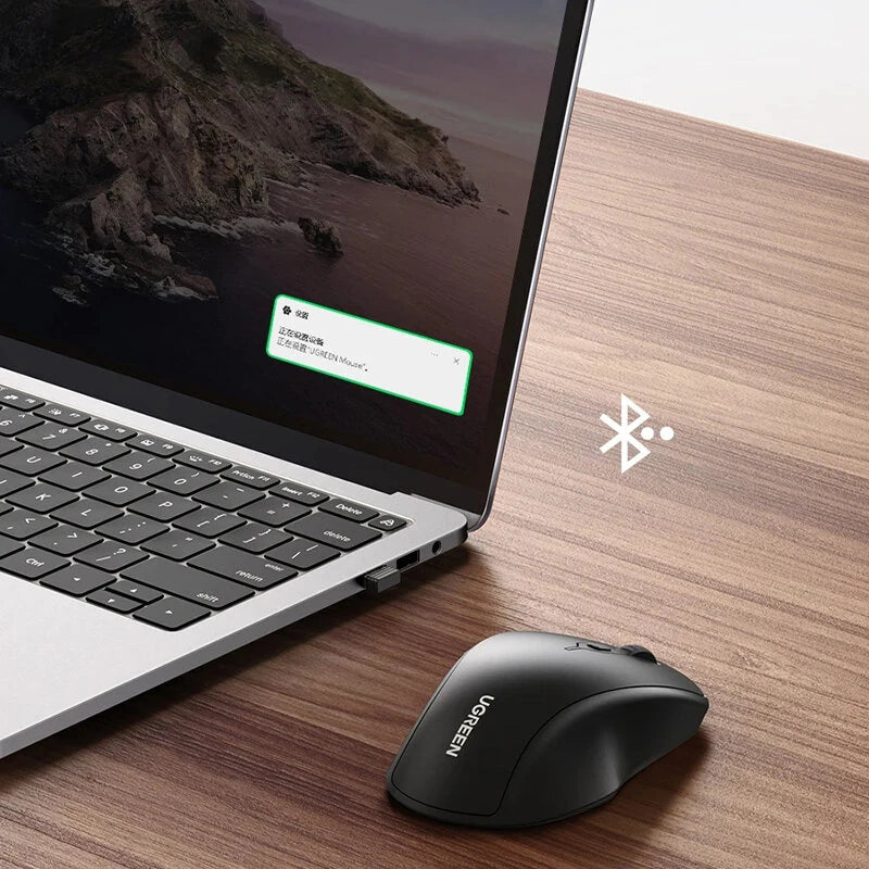 Specifications:Brand: UGreenModel: MU101Product Name: 2.4G Wireless bluetooth MouseConnection Methods: bluetooth 3.0/5.0 + 2.4G WirelessOperating Distance: 10 metersPower Supply: 1 x AA BatteryResolution: 1000/1600/2000/4000 DPIPolling Rate: 133/250 HzCompatibility: Windows 7/8.1/10/11, for macOS 10.5, Android 5.0, iOS 13.4, Linux, Chrome OS & aboveNet Weight (Product): 105g (including battery)Gross Weight (Package): 133gFeatures:1. Dual-Mode Connectivity: Seamlessly switch between Bluetooth 3.0/5.0 and 2.4G wireless, providing flexible options for connectivity.2. Precise Control: Adjustable DPI settings ranging from 1000 to 4000 DPI, ensuring precise and smooth cursor movements for various tasks.3. Ergonomic Design: Crafted for comfort, this mouse reduces strain during prolonged use, making it perfect for long working hours.4. Silent Buttons: Features mute buttons that allow for quiet operation, ideal for shared workspaces and silent environments.5. Reliable Performance: Long-lasting battery life with just one AA battery, complemented by a robust and high-quality build for enduring usage.Package Includes:1x UGreen MU101 Wireless bluetooth Mouse1x USB Receiver1x User Manual