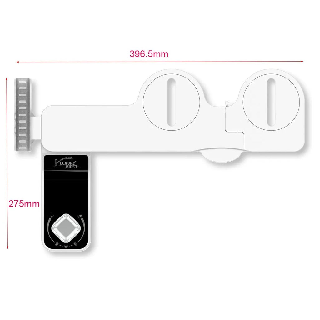 【Ultra-Slim&Comfort Cleansing】With only 0.35 inches ultra-slim bidet, the height of toilet remains the same after installation, fully fits the the lid. Bidet helps you clean your butt with gentler,efficient water squirts, which saves you from risks of various infections. Our bidet is made of high-quality ABS material and solid metal parts for more durability.【Water Pressure Control】The classic switch design with independent water pressure control and mode switch knobs, it's more convenient to use.you can adjust the bidet to your preferred water pressure for maximum comfort. In addition, the nozzle has angle control and self-cleaning mode, which is convenient for the disabled, women, the elderly, men, and children to use it.【Save Money and No need electricity】Using the bidet attachment can replace and reduce the use of traditional toilet paper, no need of electricity, avoid electric shock accident, cut emissions and electricity bills, effectively avoiding paper friction, protect fragile skin, and bring you a milder and more hygienic experience. Non-electricity design can save a lot of electricity bills, perfect for men, women, new and old moms【Easy to Install】The bidet attachment for toilet comes with all the premium components and instructions needed for installation, compatible with most toilets.No need to hire a plumber or handyman! This bidet for a toilet can be installed in under 10 minutes with no tools required - everything you need to install is included.【Packing list】Bidet double nozzle*1,Steel wire cold water hose (64cm)*1,Brass T-connector*1,Rubber gasket*1,tape*1,installation instruction*1【ordering instructions】1/2 applicable to Russia, Israel, Brazil, Ukraine, Chile, South Korea, Australia, Belarus, United Kingdom, New Zealand and other Asian/South American countries3/8 For Europe, such as France, Spain, Portugal, Netherlands, Switzerland, Germany, Italy, Poland, etc.)15/16 (US, Canada, Mexico, North America)