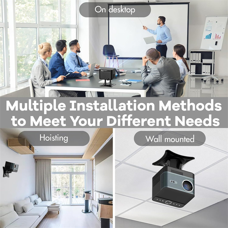 2. Versatile Installation: Designed for desktop placement, wall-mounted use, or ceiling hoisting.