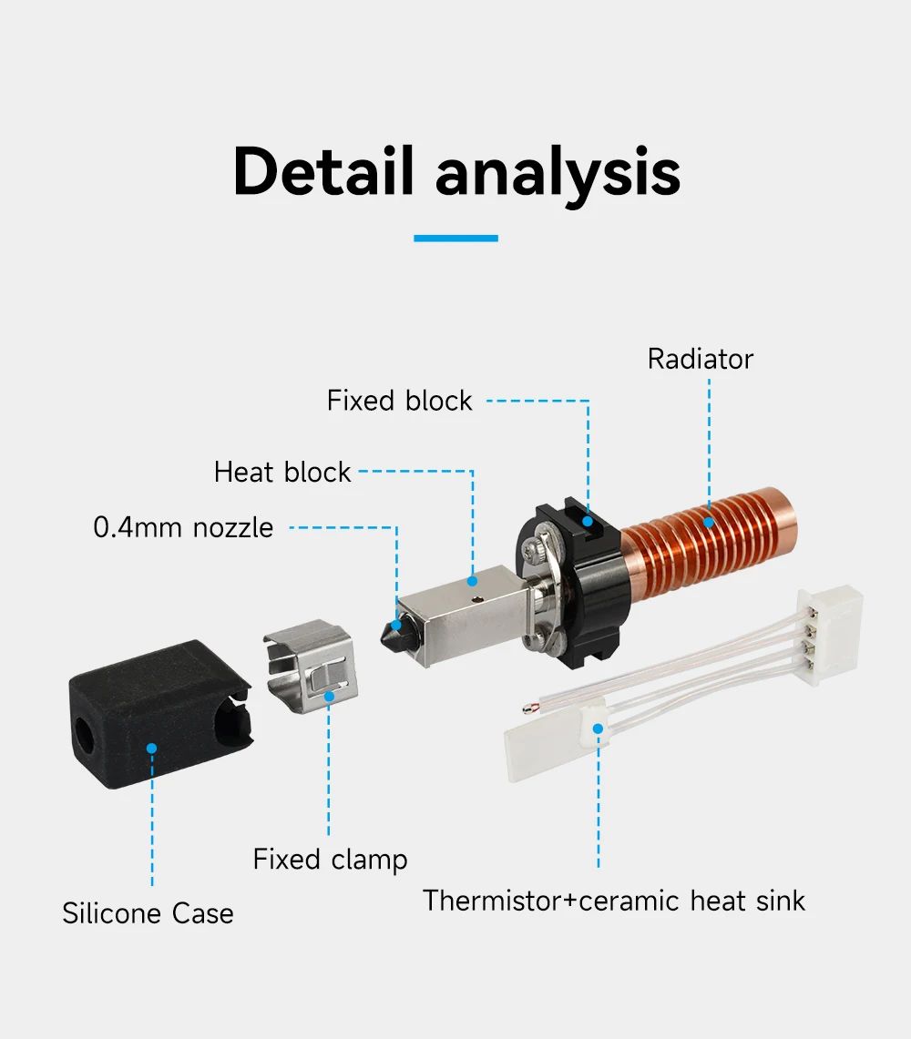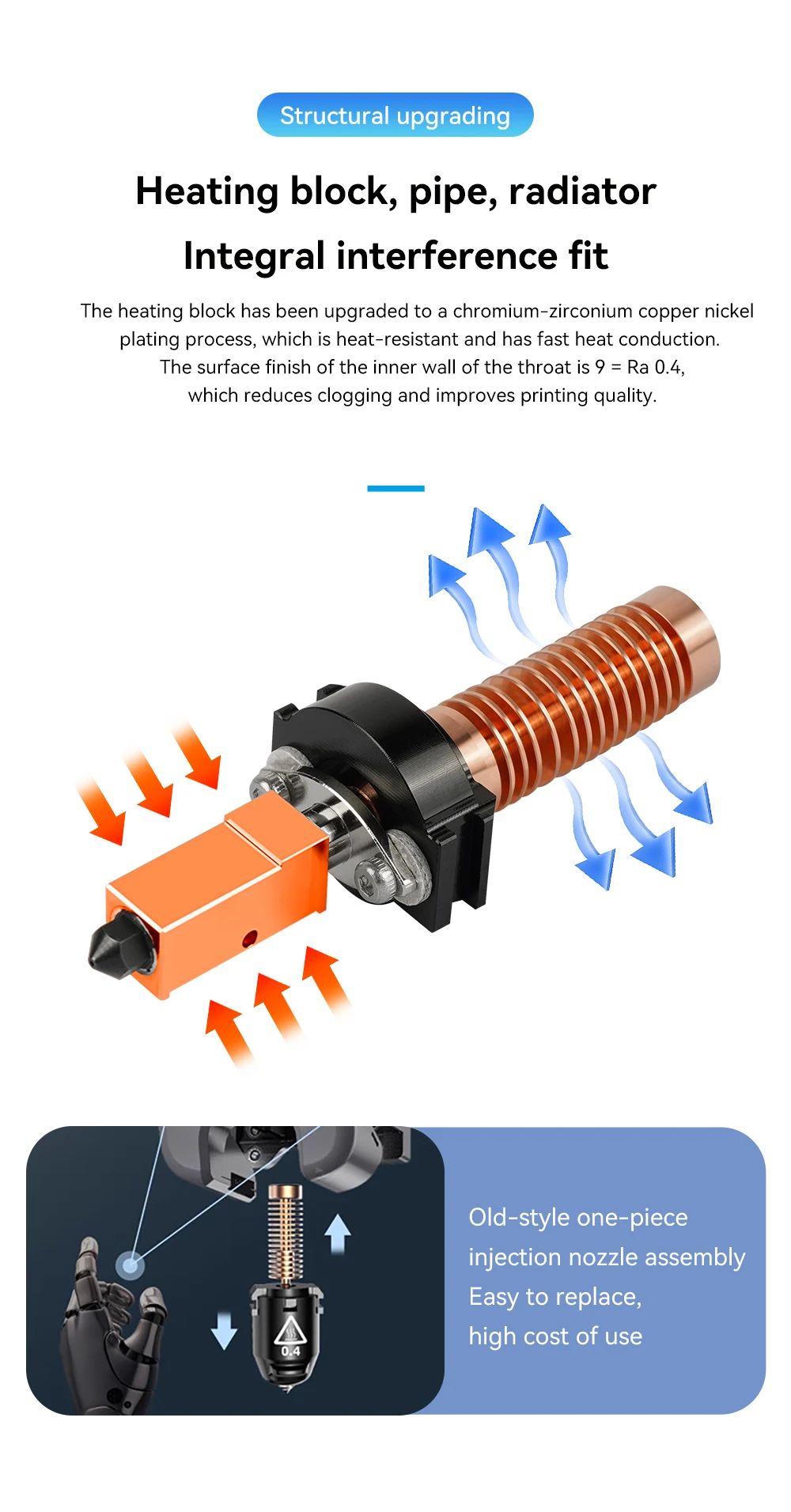 2. Enhanced Heat Conduction: Chromium-zirconium copper plating improves heat transfer for consistent printing.