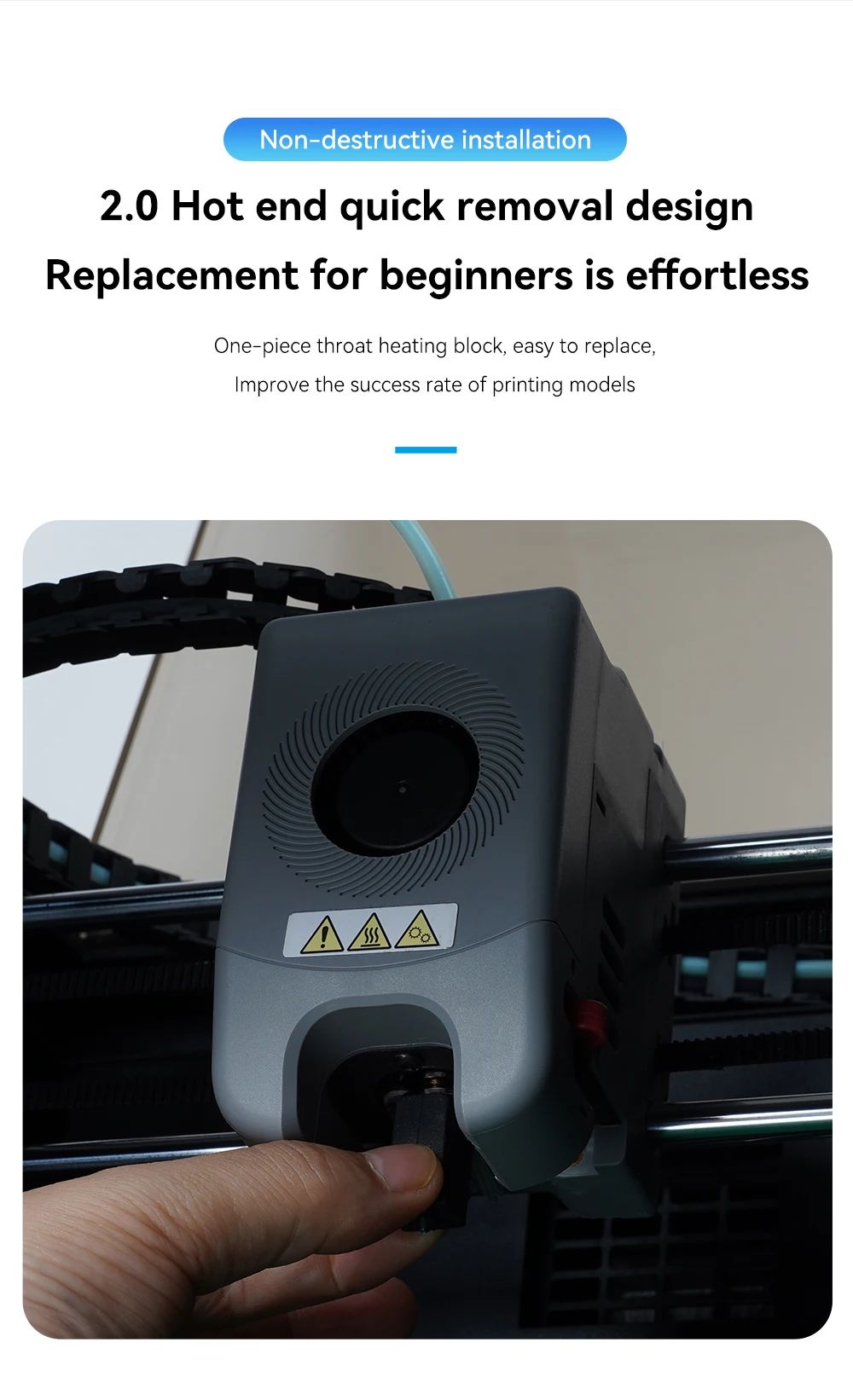 1. Quick Release Design: Effortlessly remove and replace the hot end for easy maintenance.