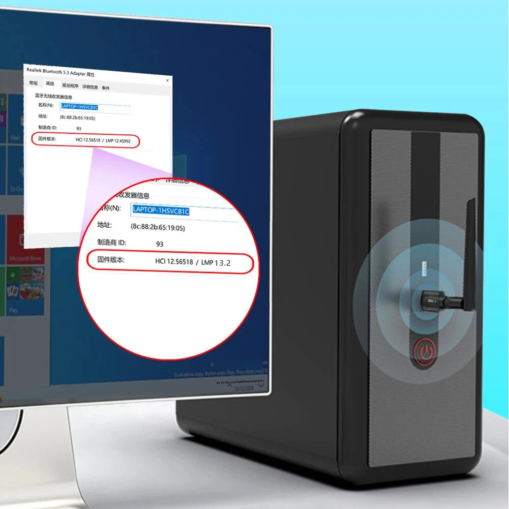 1.Advanced bluetooth-compatible 5.4: Utilizing the latest 5.4 bluetooth-Compatible chip compliant with 5.3 specifications, the USB bluetooth-Compatible 5.4 adapter ensures dual-mode BLE/EDR connectivity for low-energy, high-efficiency performance across devices.