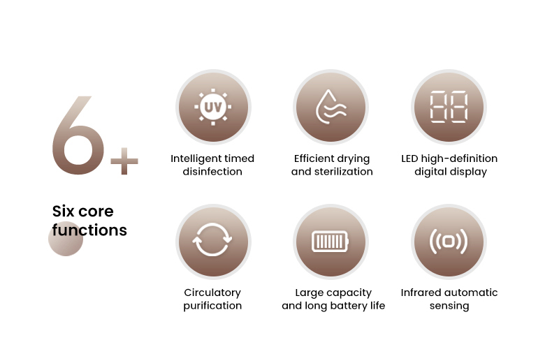 Functions: Ultra-clear screen display/high efficiency sterilization/intelligent drying