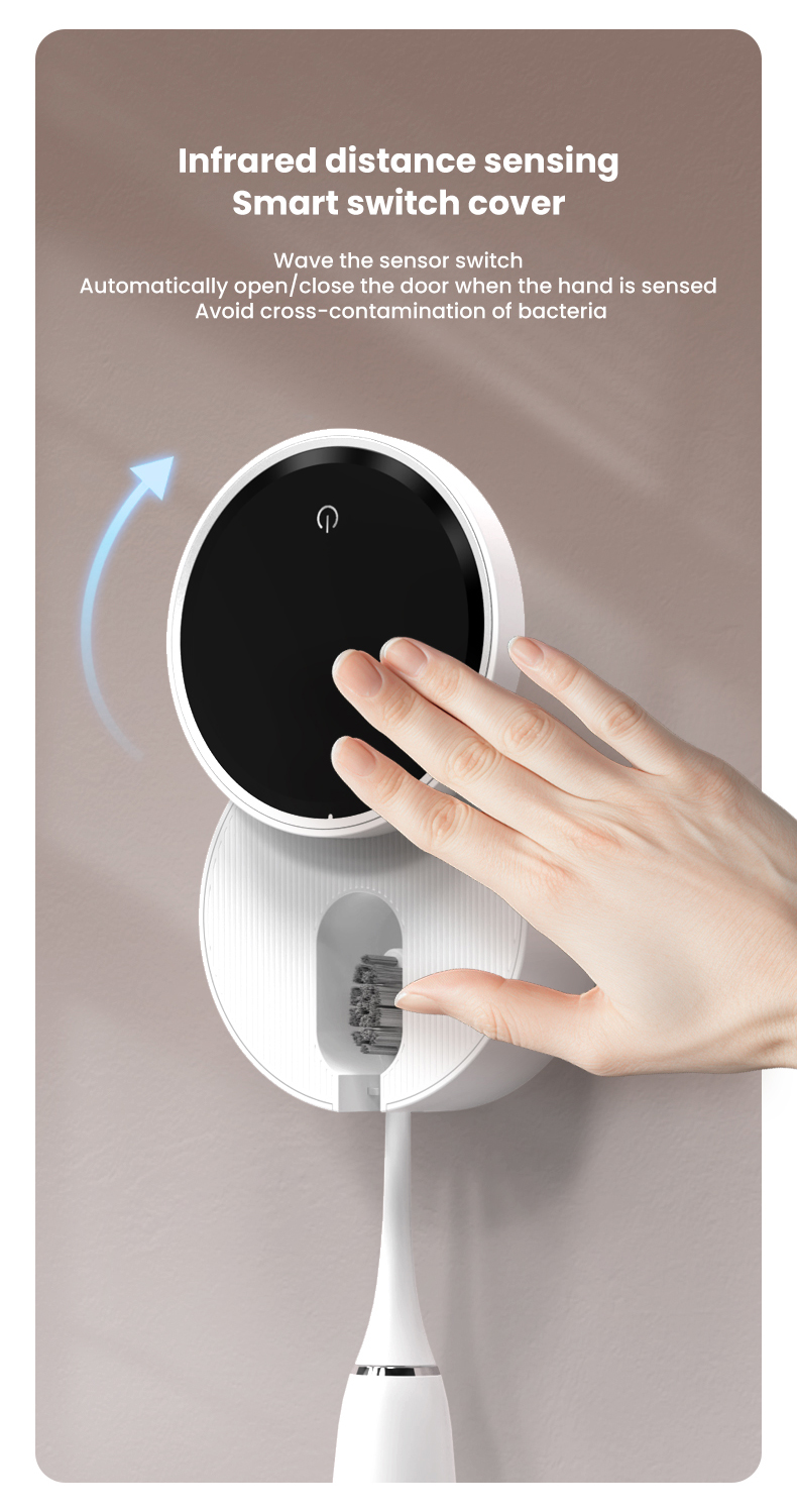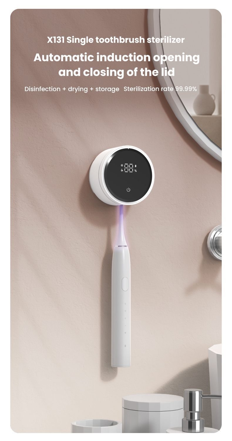 - Automatic Induction Opening & Closing: The X131 Toothbrush Sterilizer features a smart sensor that automatically opens and closes the lid when it detects hand movement, preventing cross-contamination and ensuring user convenience.