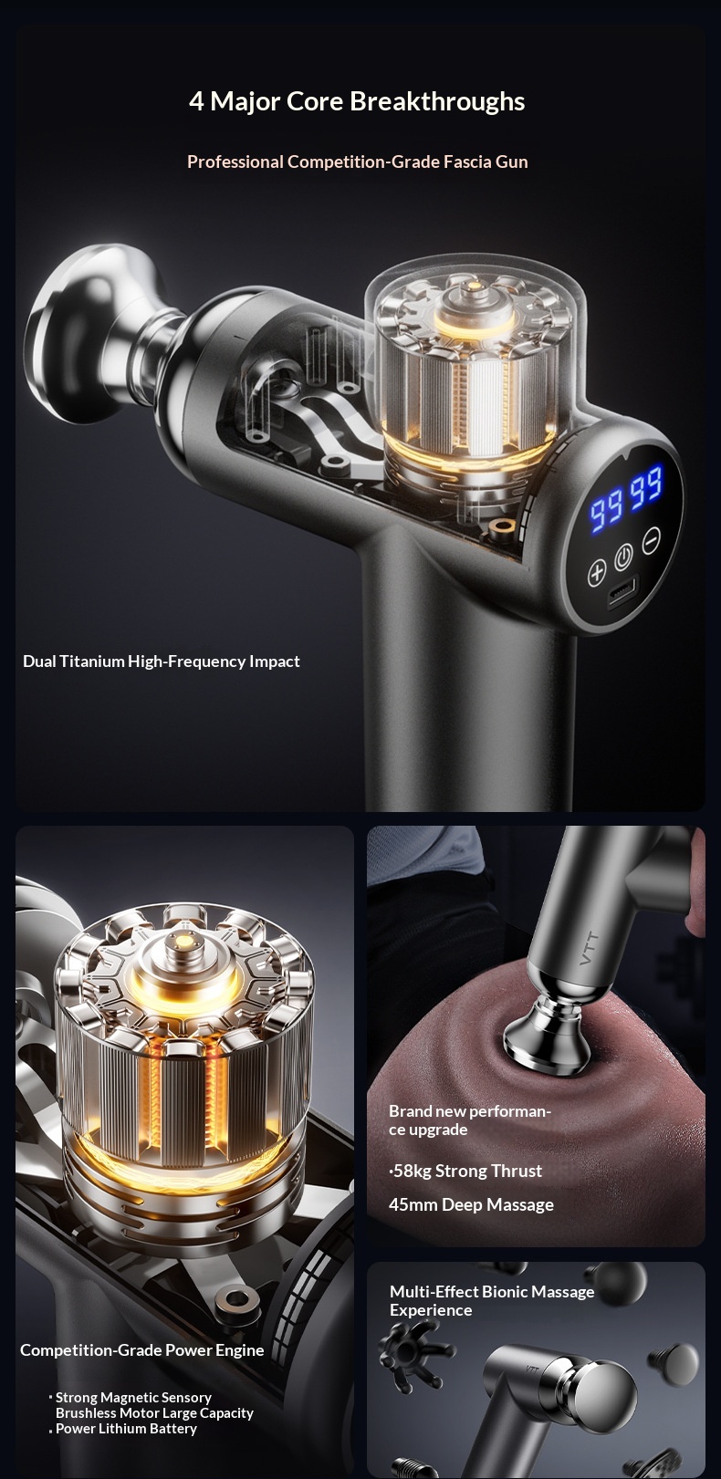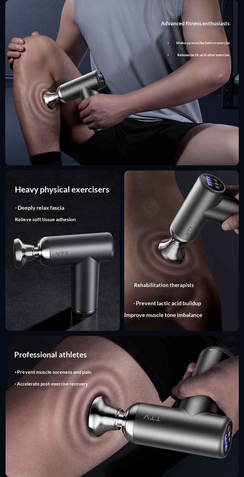 - Powerful deep reach: 58 kg output with 12 mm stroke drives up to 45 mm depth for large and tight muscle groups.