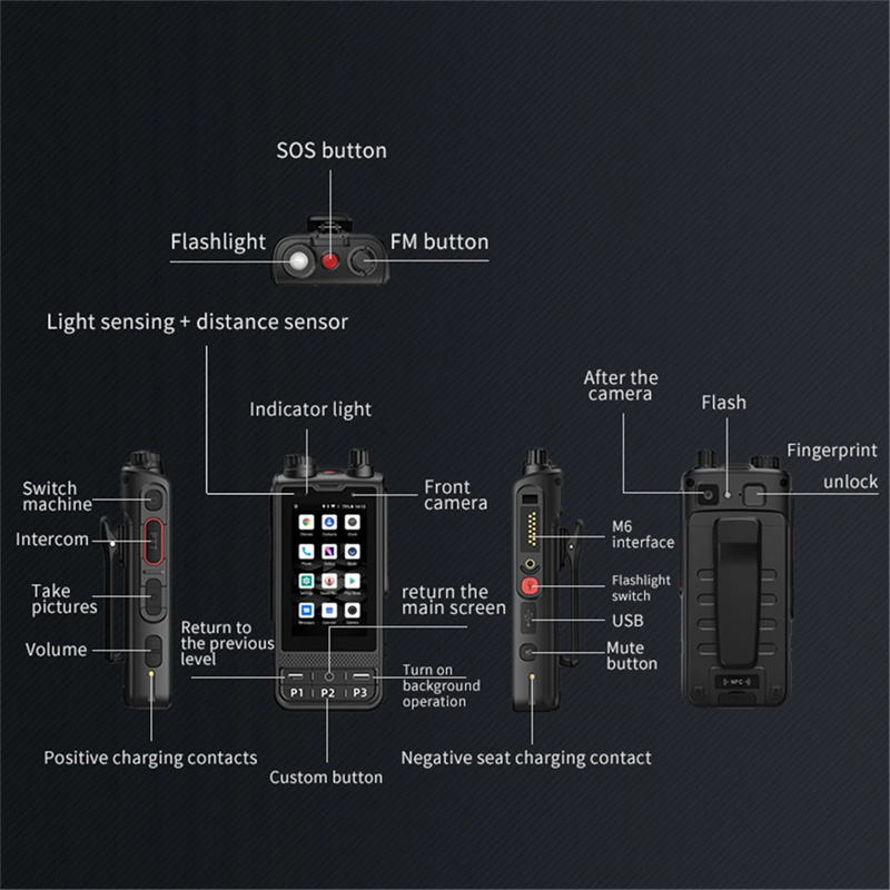 8 buttons on the side: PTT button, POC button, power button, volume plus and minus buttons, SOS button, camera button, flash button
