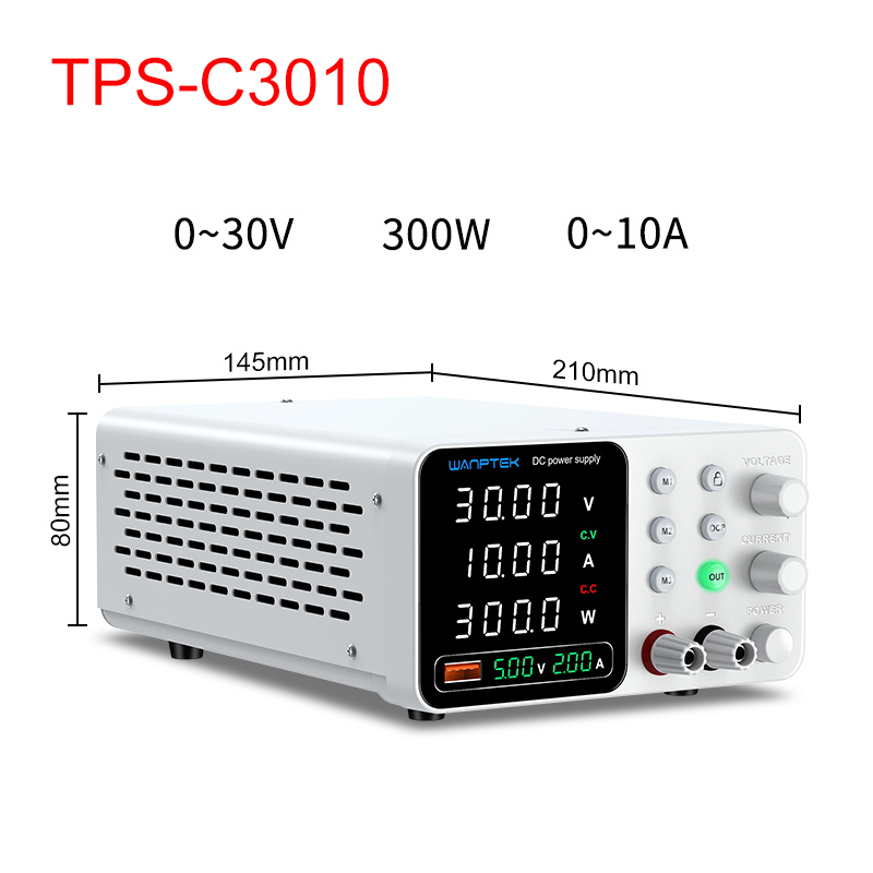 Constructed with high-quality materials, this power supply is designed for reliable performance across a wide range of applications. The compact design (210mm x 145mm x 80mm) ensures it fits comfortably on any workstation without taking up too much space.