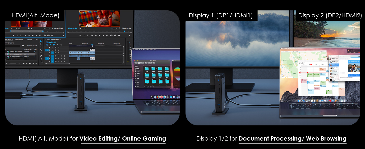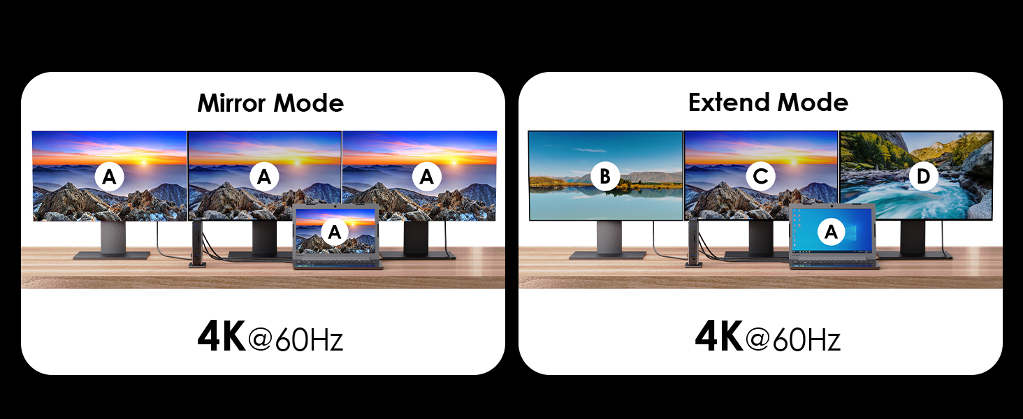 3. One Alt Mode HD, two HD ports and two DisplayPorts support up to 4K@60Hz video output, allowing you to connect multiple screens.