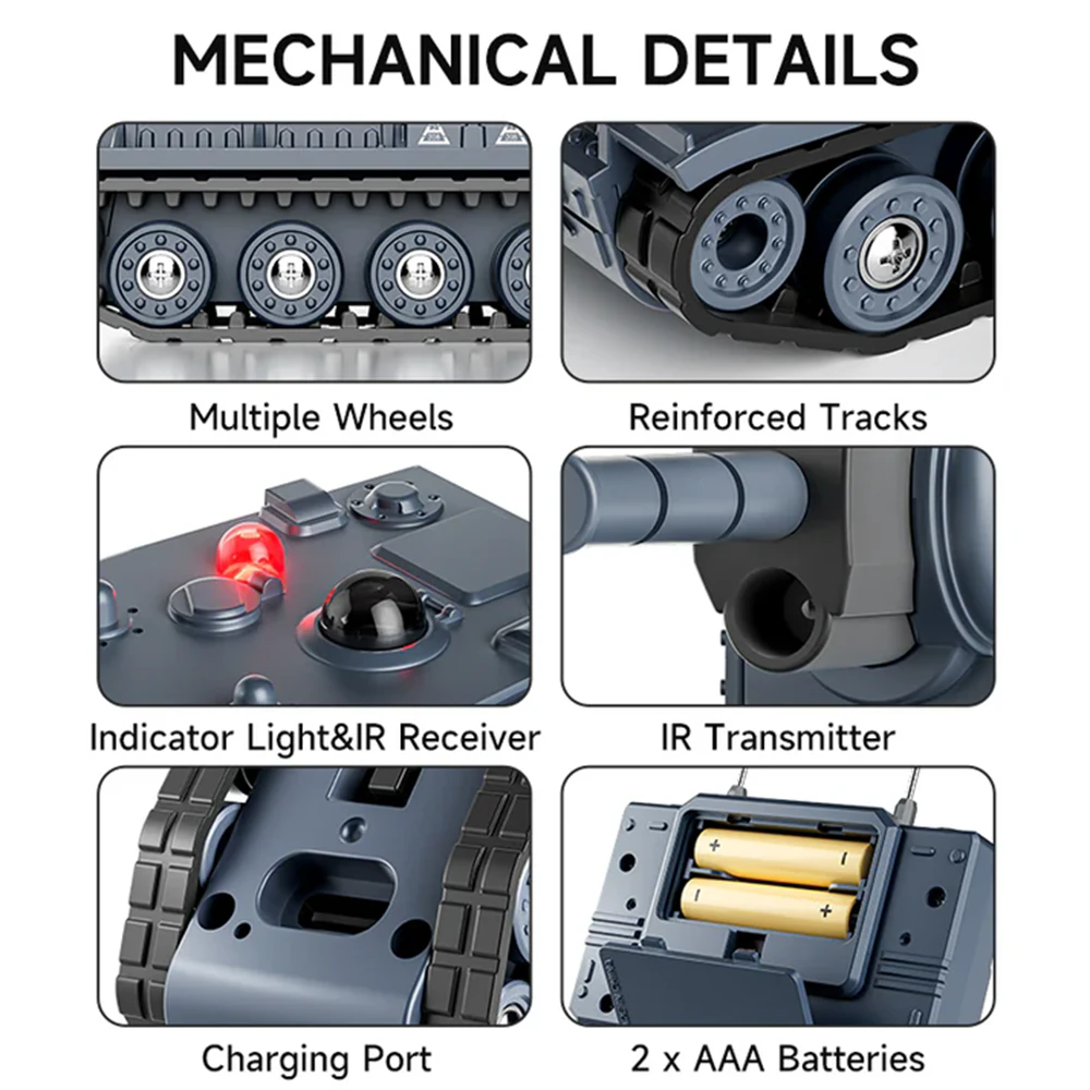 Real Tank Simulation – Features authentic track movement, LED indicator, realistic sound, and an IR receiver.
