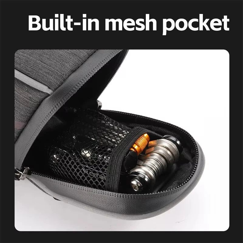 2.Splash-Proof Design for Daily Use: The surface of our bike saddle bag is made of cationic grid material, offering protection against splashes and light rain. Equipped with a waterproof zipper, it ensures your belongings stay dry and secure during your daily commutes, even in light showers.