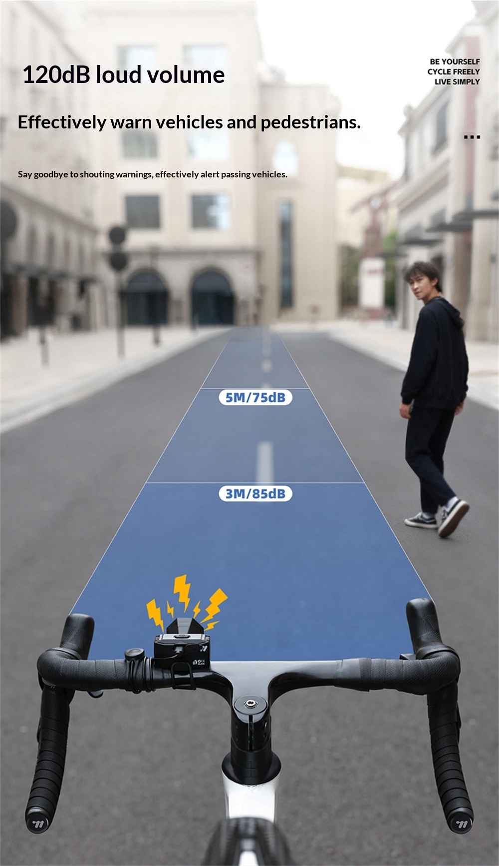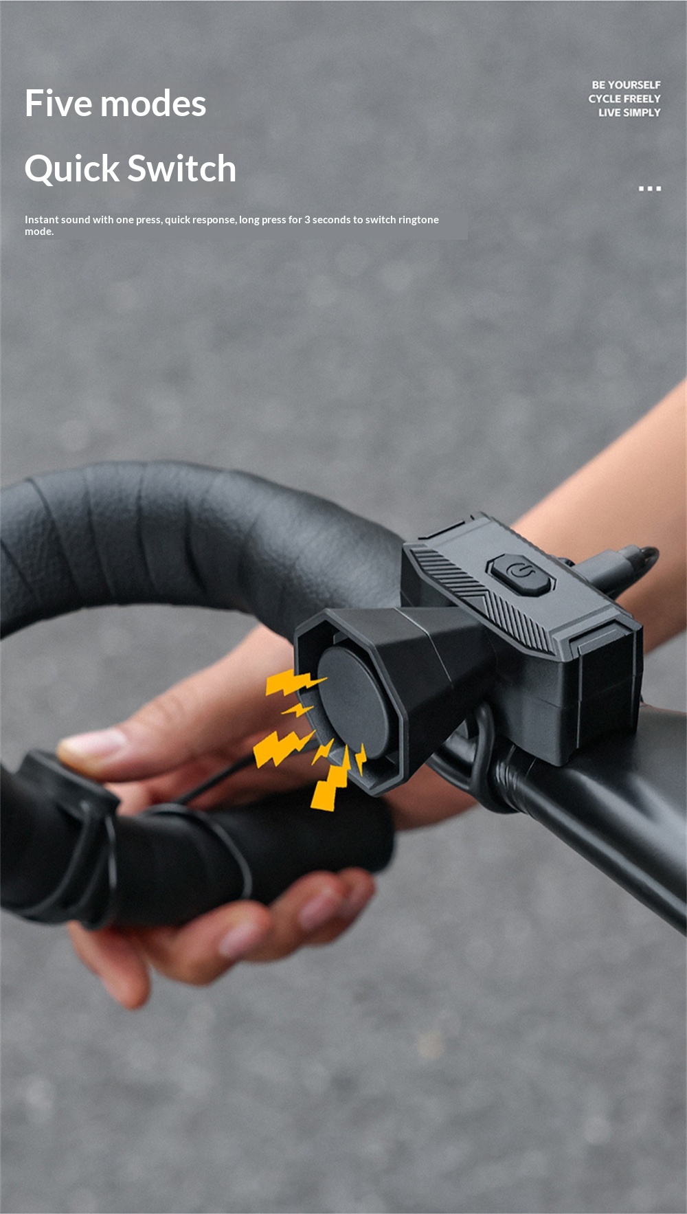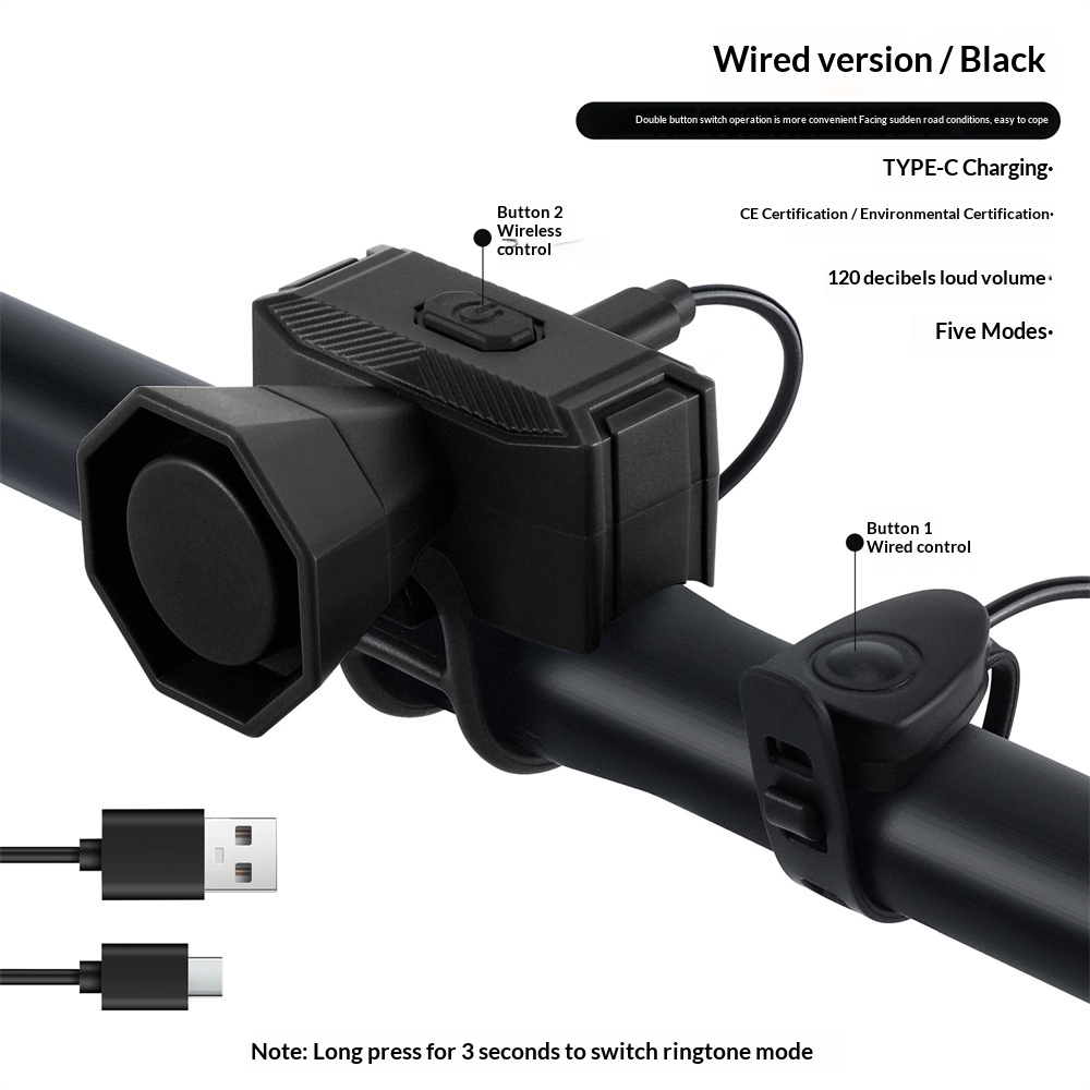 1. Loud & Clear Sound—— 120dB volume with 5 distinct modes to ensure you're heard by pedestrians and vehicles