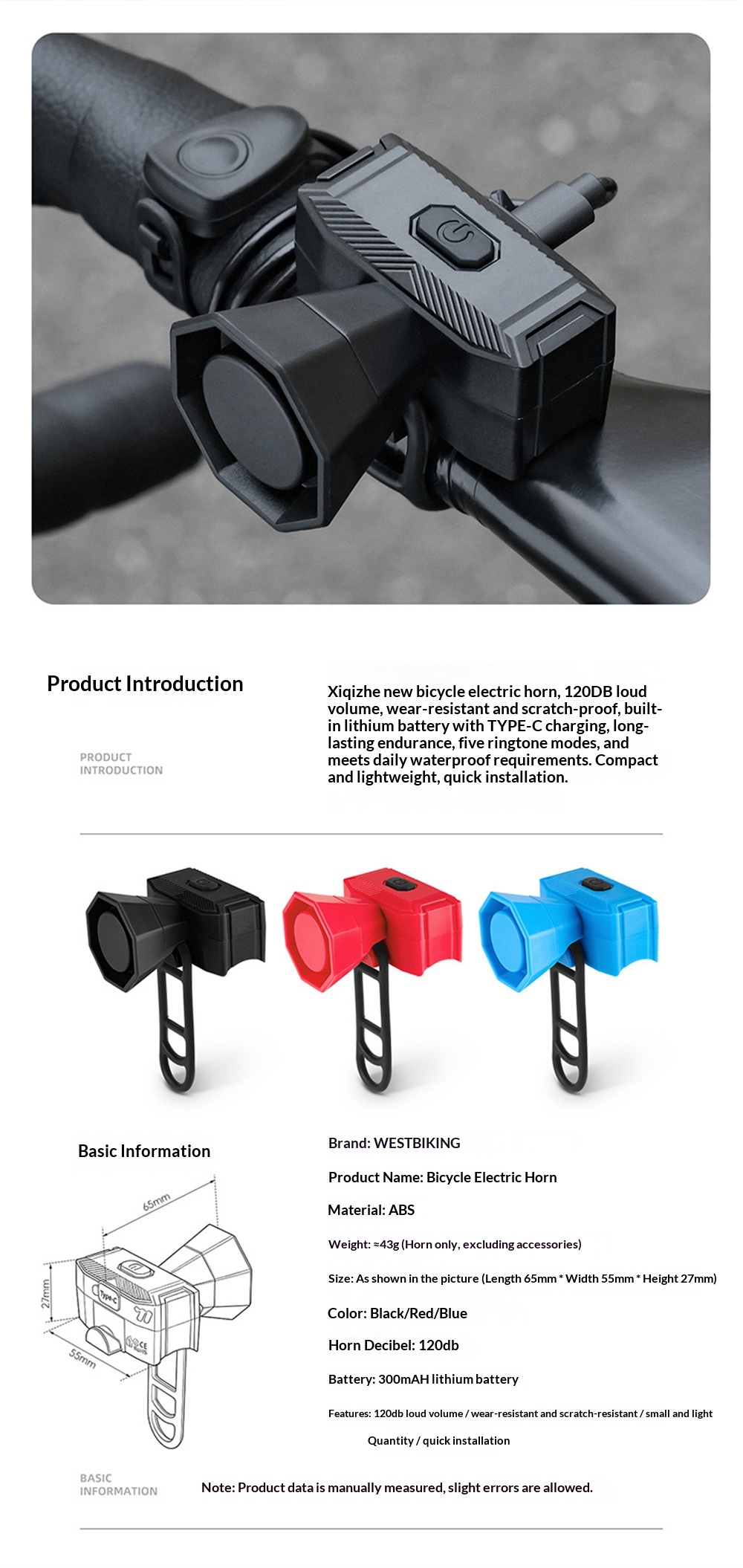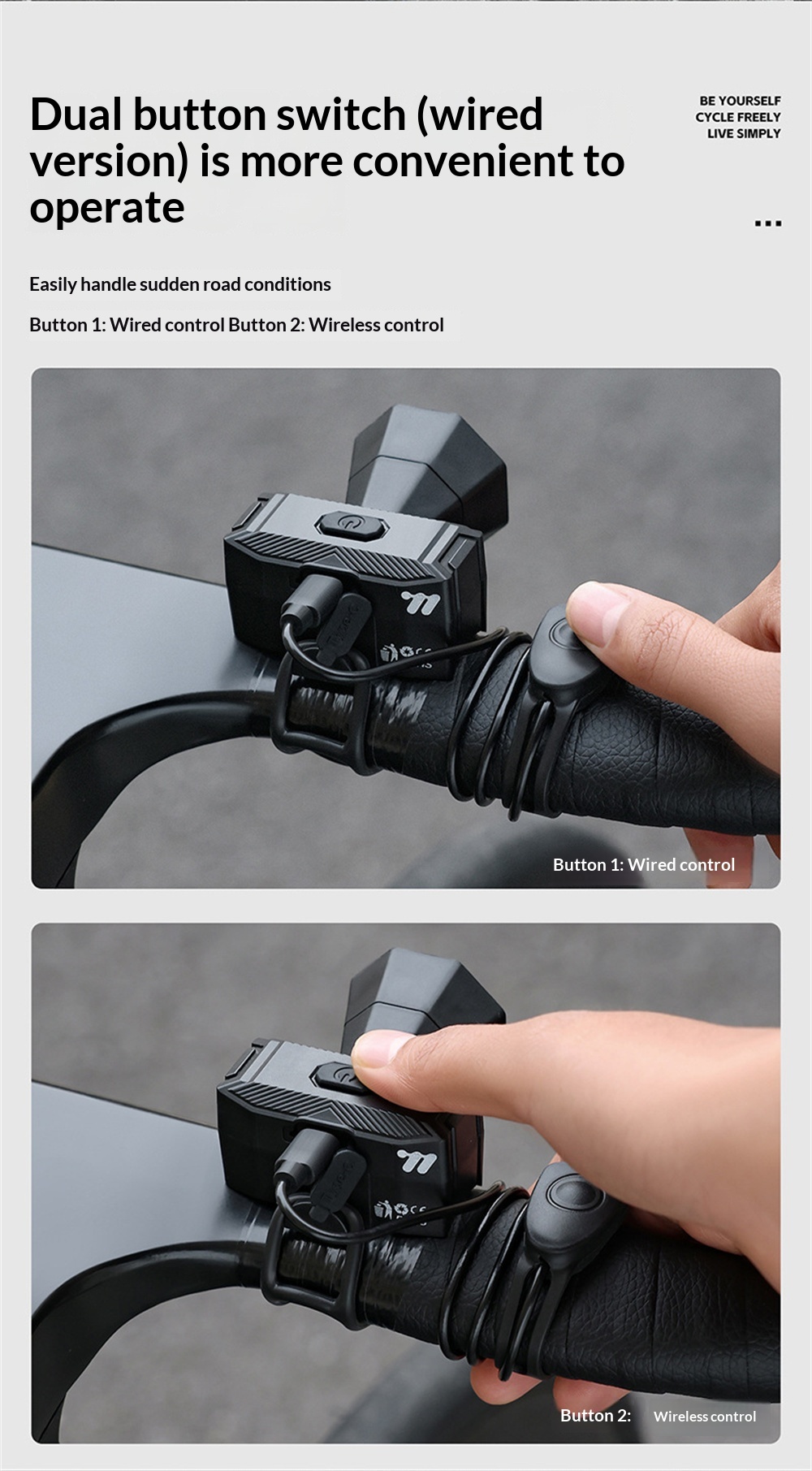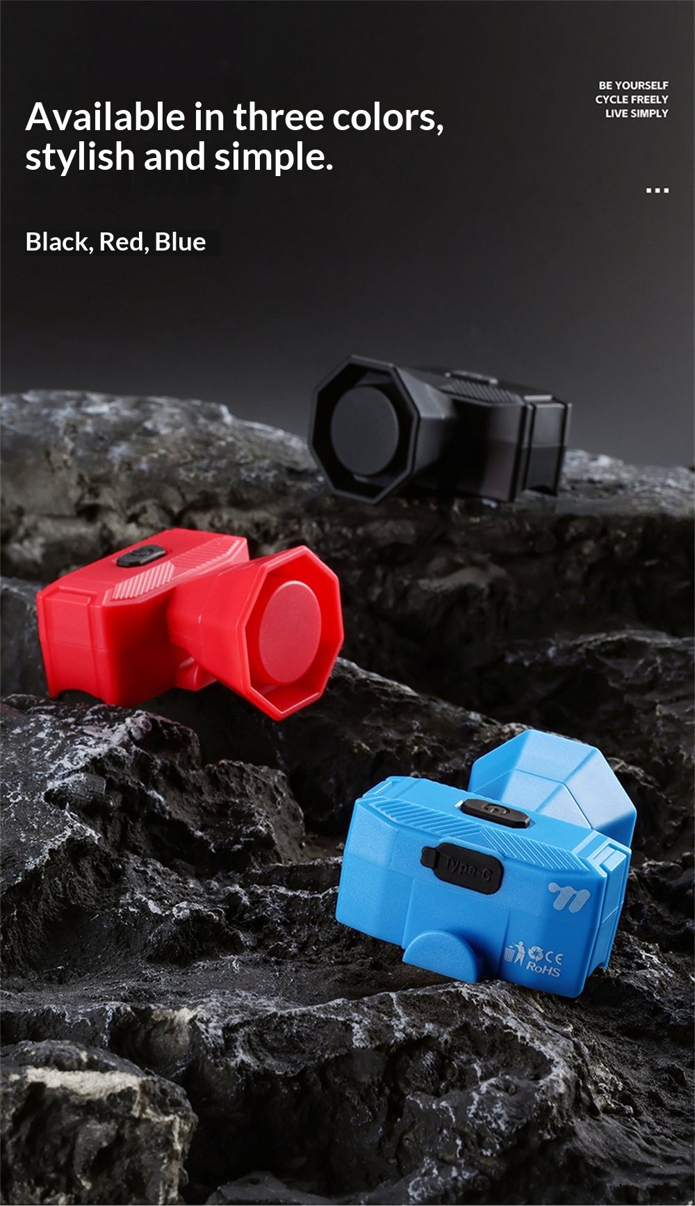1. Loud & Clear Sound—— 120dB volume with 5 distinct modes to ensure you're heard by pedestrians and vehicles