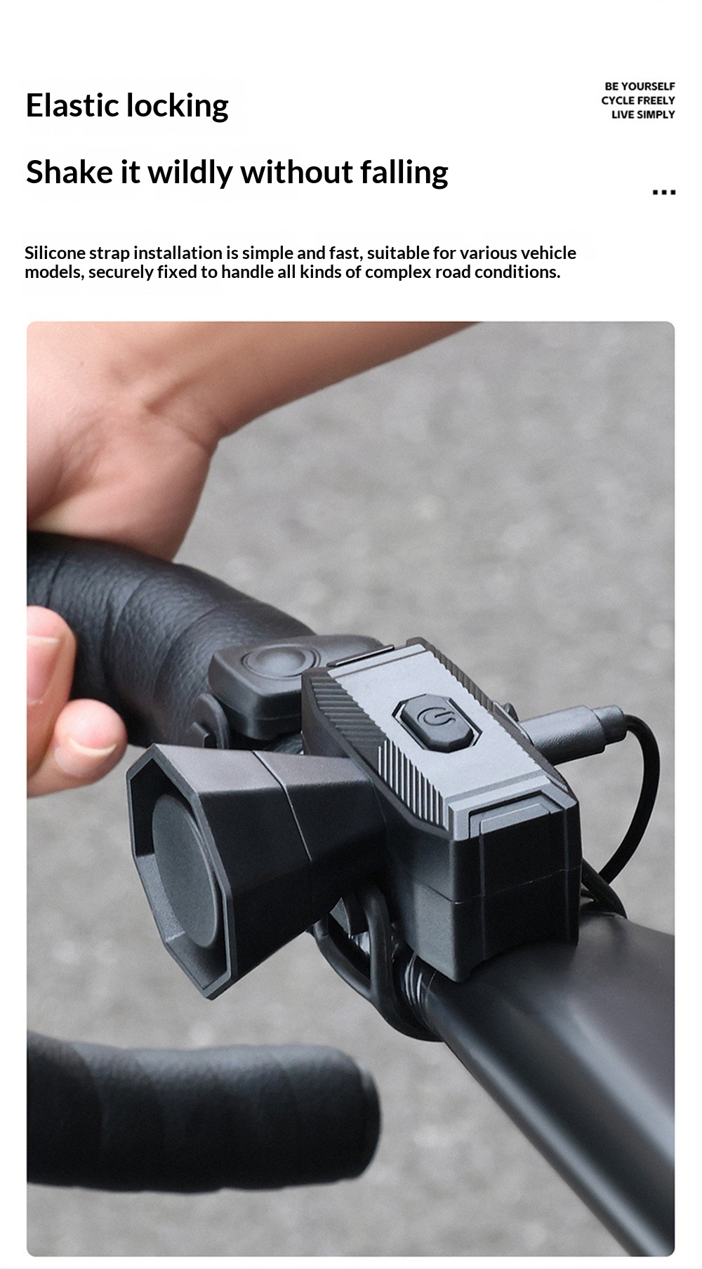 4. Quic Installation—— Quick-release stretch straps mount securely to any bike handlebar in seconds
