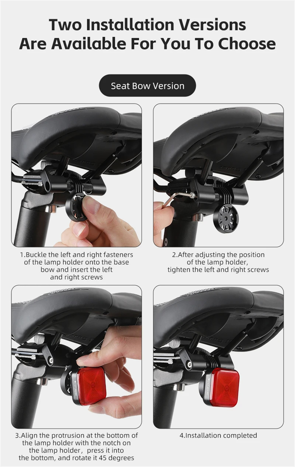 2. Multiple Mounting Options: Features two mounting ways, easily attaches to the seat post or saddle for versatile installation.