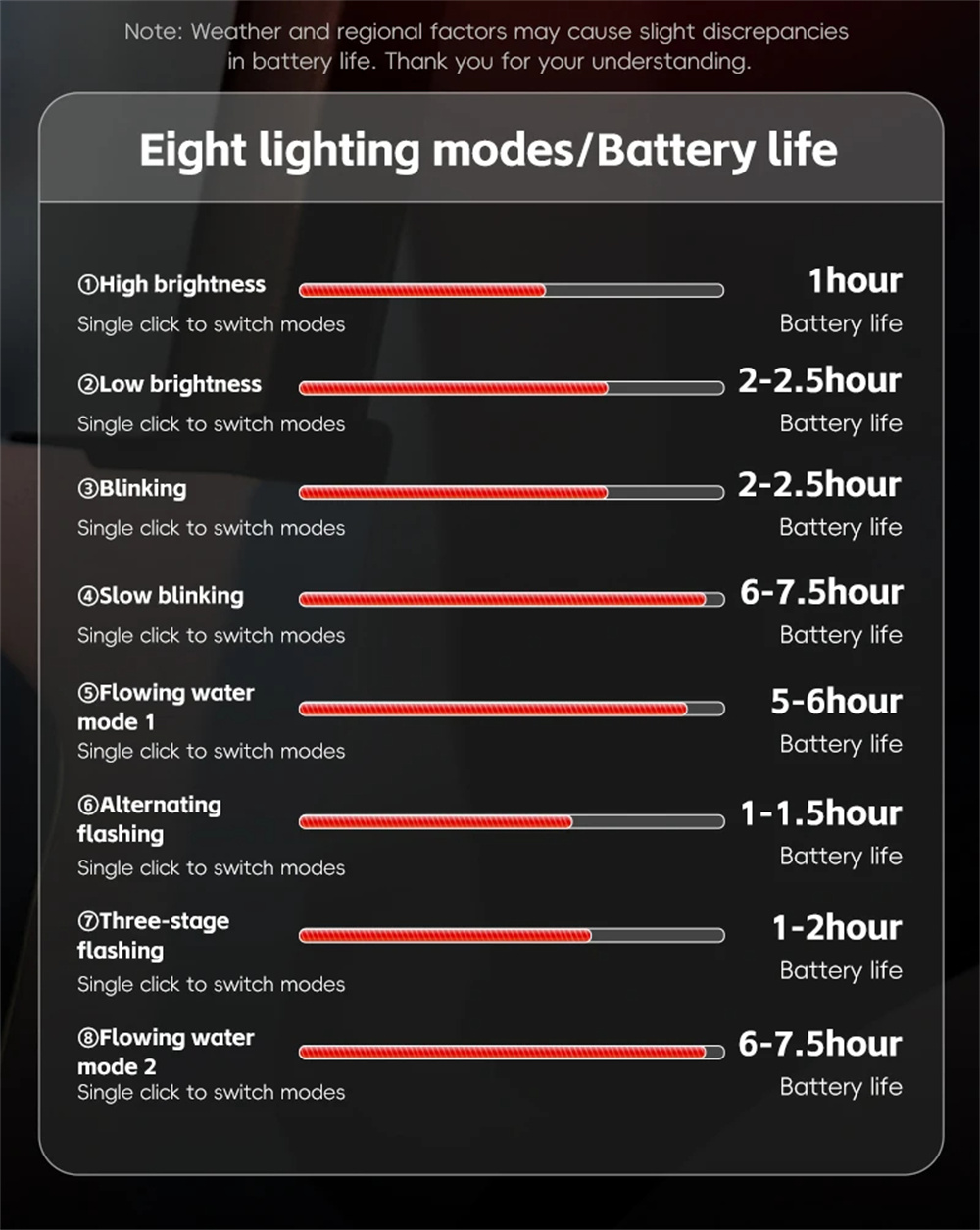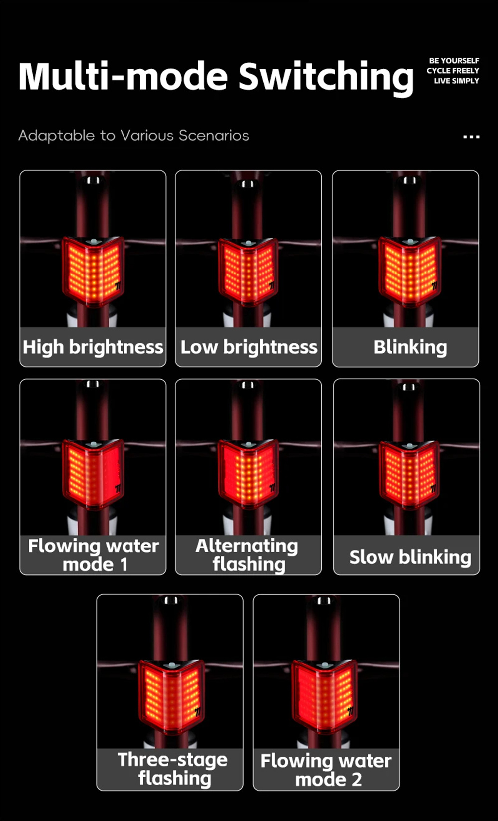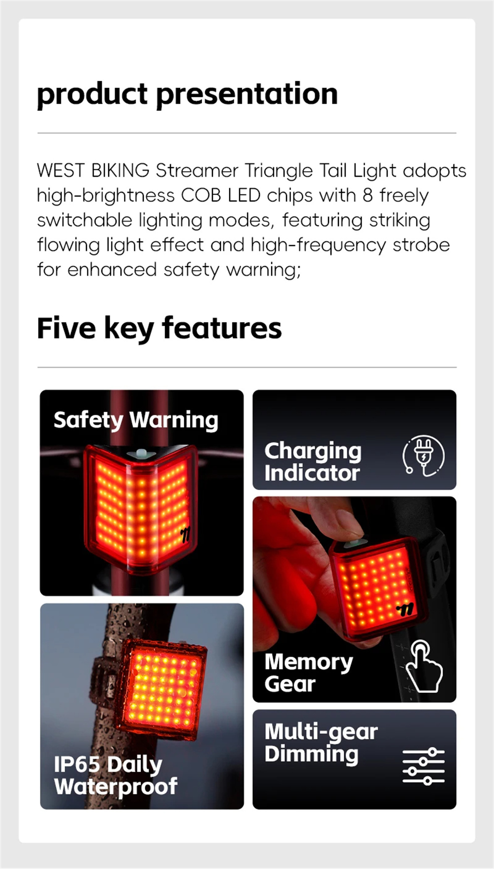 1. Multi-Mode Functionality: Equipped with 8 modes, this WEST BIKING rear light offers versatile lighting options for various cycling conditions.
