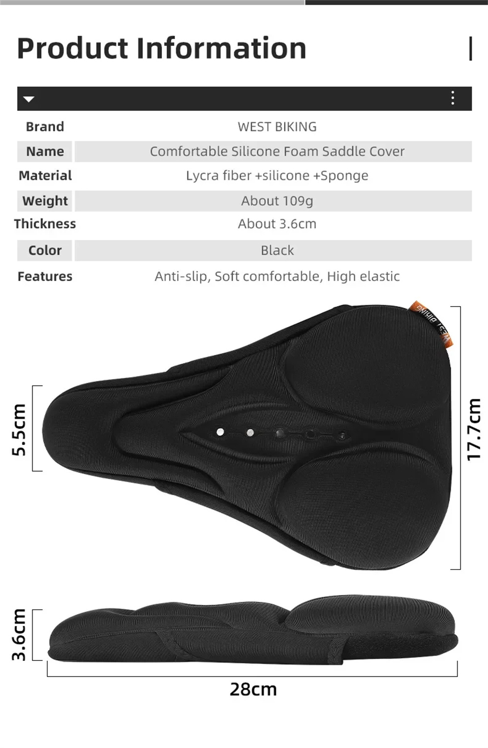 5.High Elastic MTB Road Bike Seat Cushion: The WEST BIKING Bicycle Saddle Cover offers a high elastic design for a snug fit on your MTB or road bike, enhancing comfort during rides.