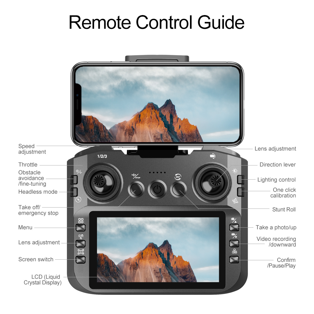 1. The drone has its own screen for real-time viewing of the flight screen.