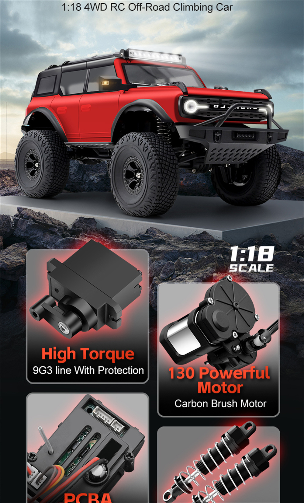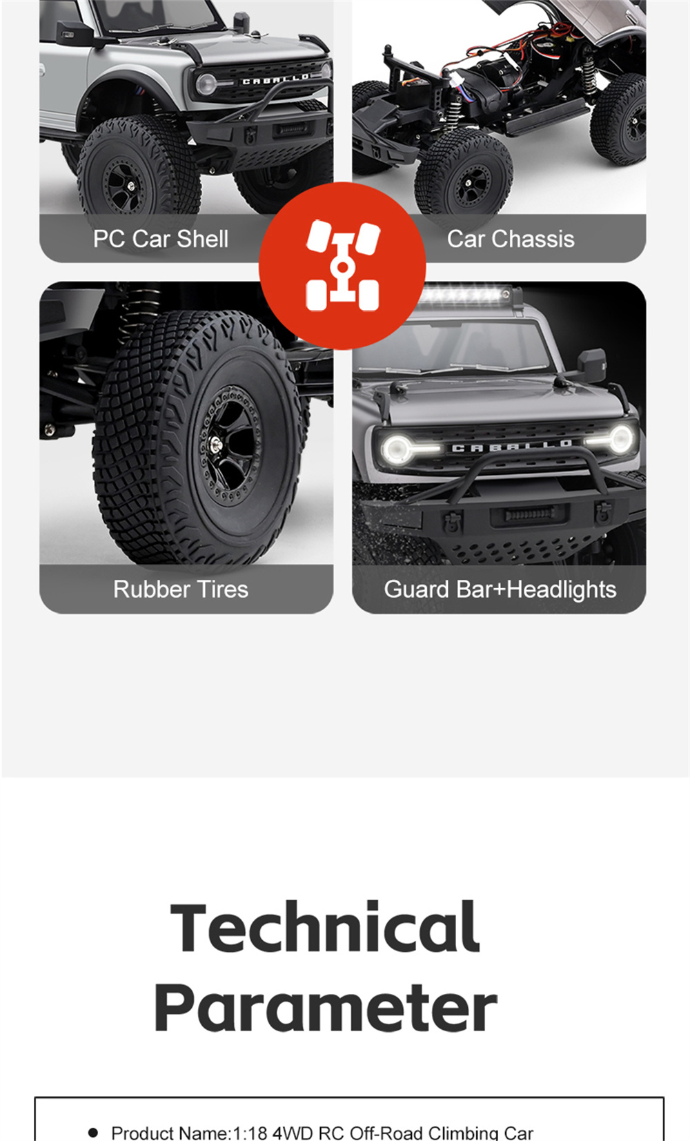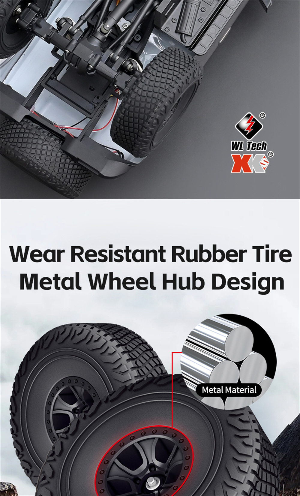 3. Employs a portal axle design, providing higher chassis space and better off-road capability; alloy wheels and rubber tires offer superior grip.