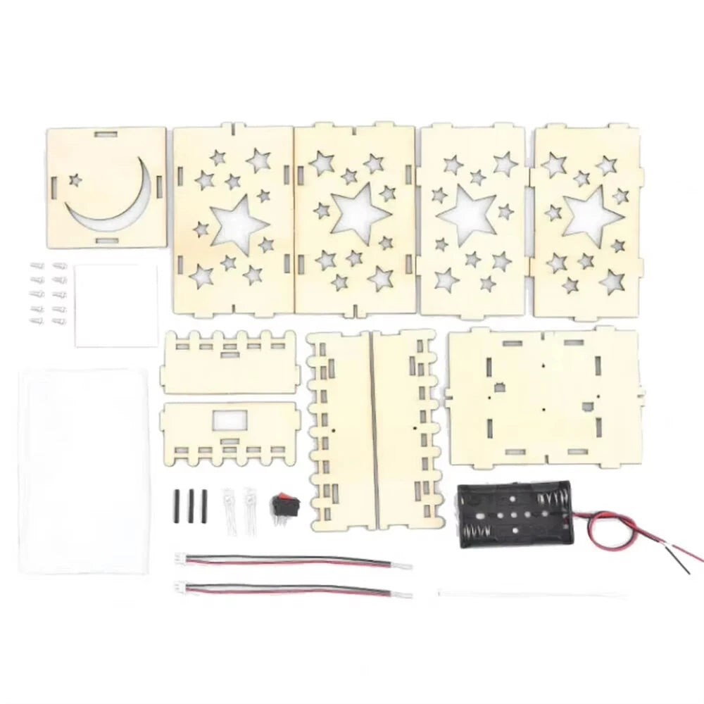1.Engaging DIY Experience: Develop hands-on skills with our easy-to-assemble wooden starry night light kit, designed for children aged 6 and above.