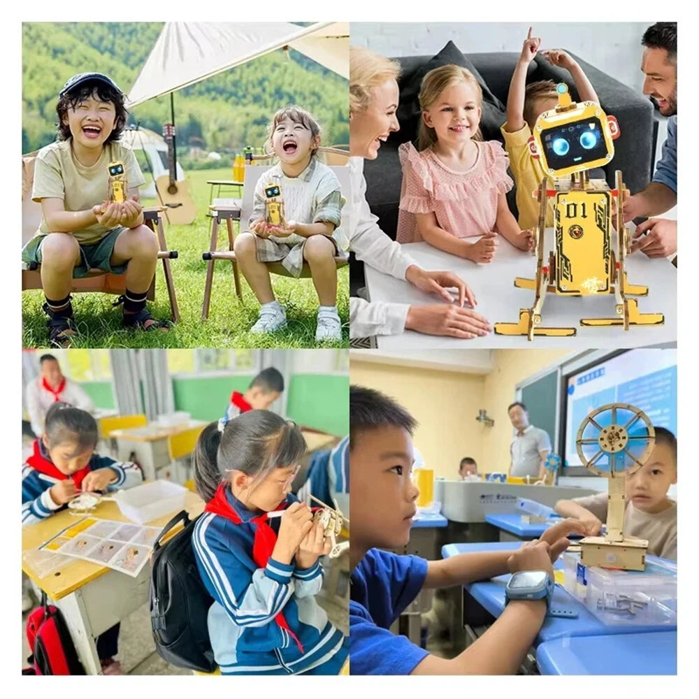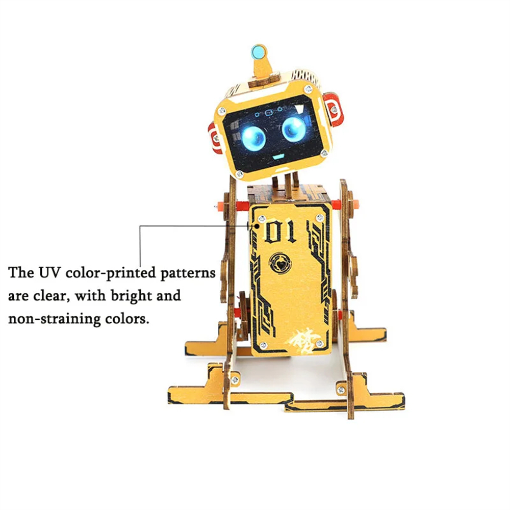 How to use: After assembly, turn on the switch, clap your hands or make a sound. After the robot detects the sound, it will simulate walking by swinging its arms and feet, and shaking its little head.