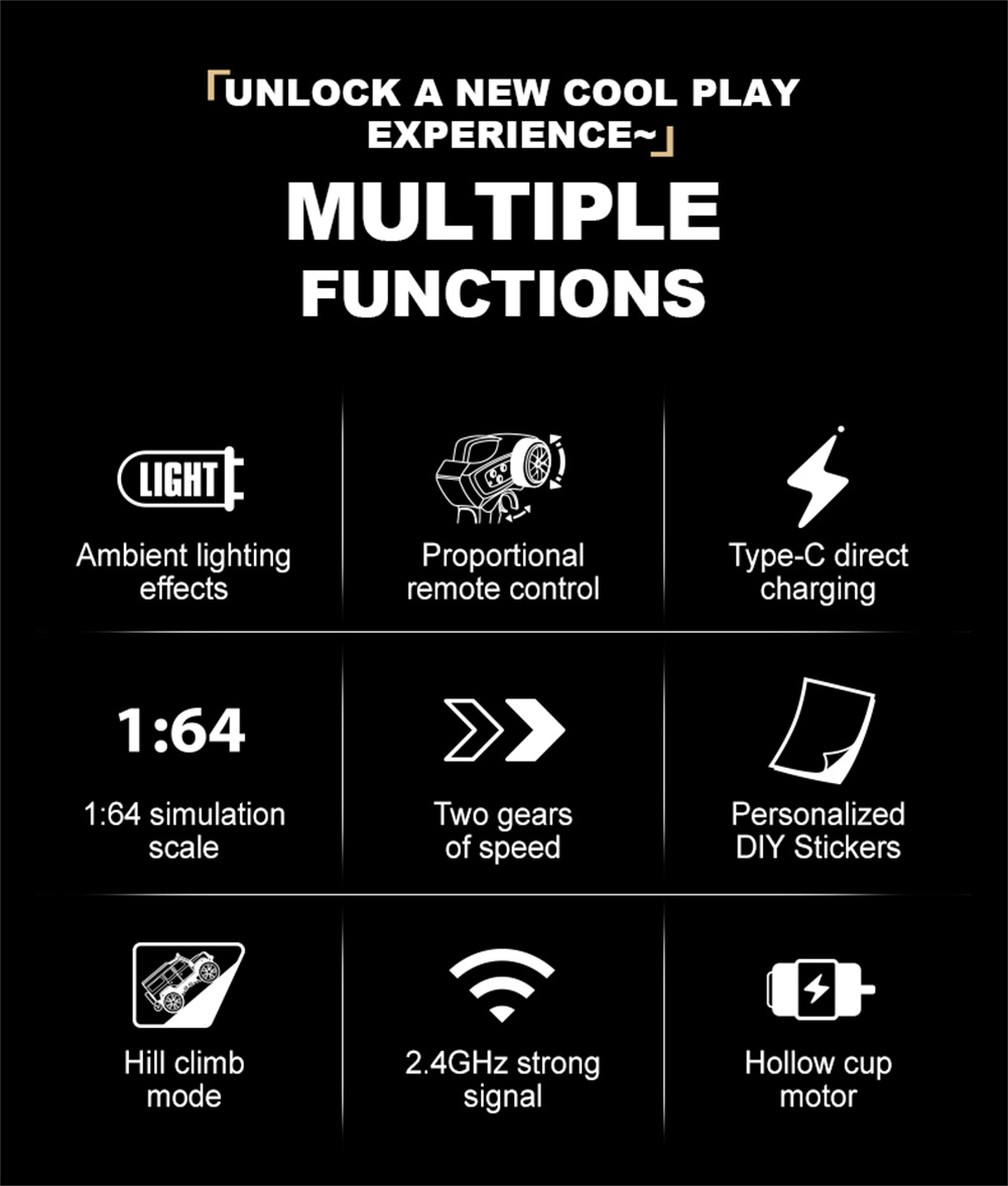 1. 2.4G remote control, multiple units can be used simultaneously without interference.