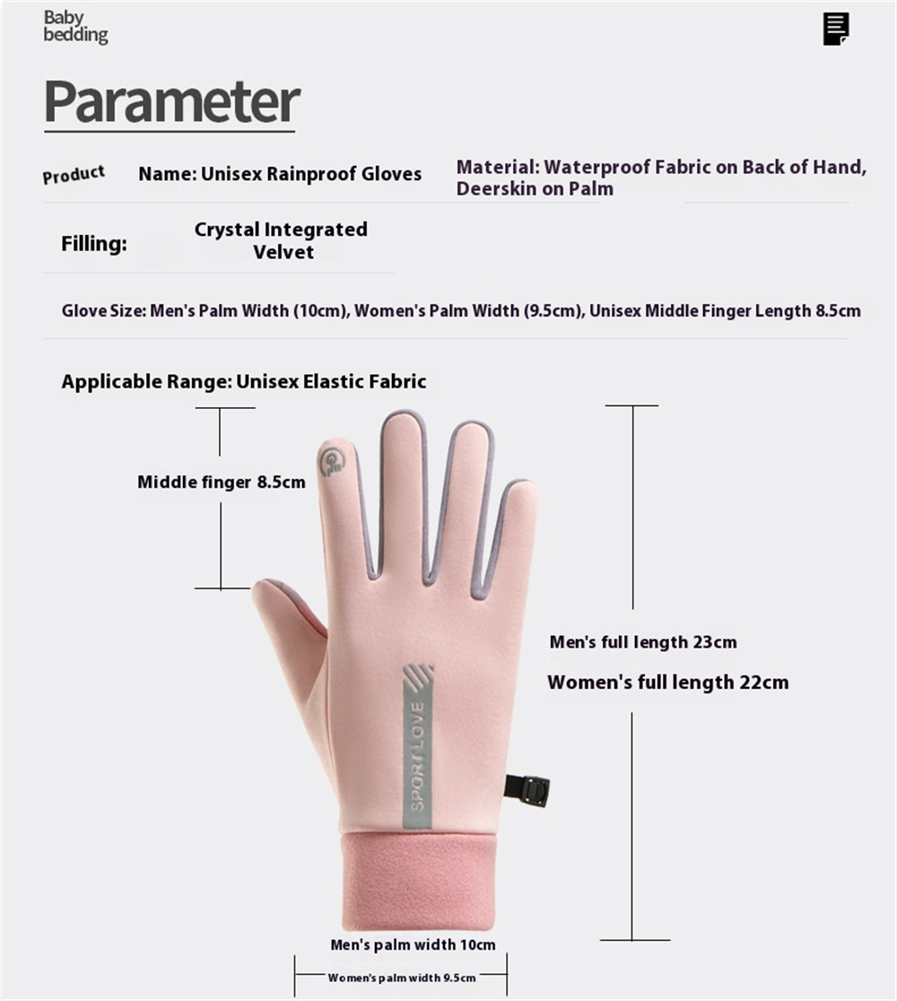 | Material | Back: Waterproof fabric; Palm: Polyester fleece |