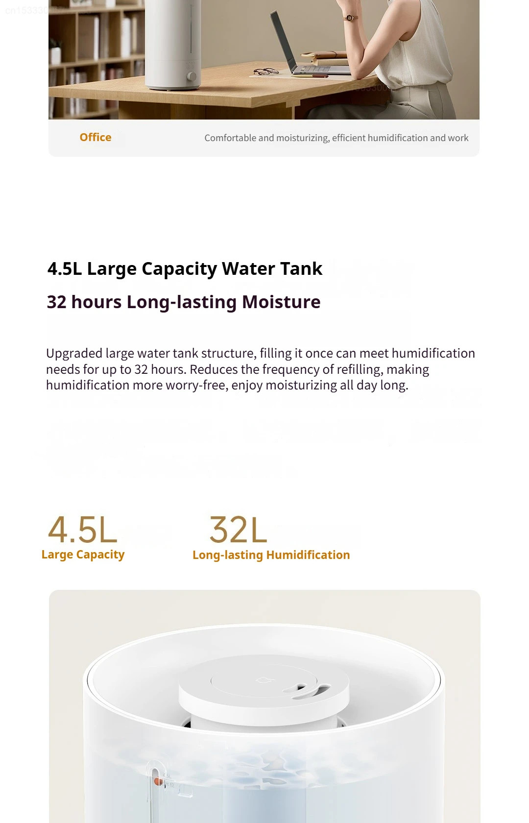 2. A large 4.5L water tank provides up to 32 hours of humidification on a single fill, eliminating the need for frequent refills.