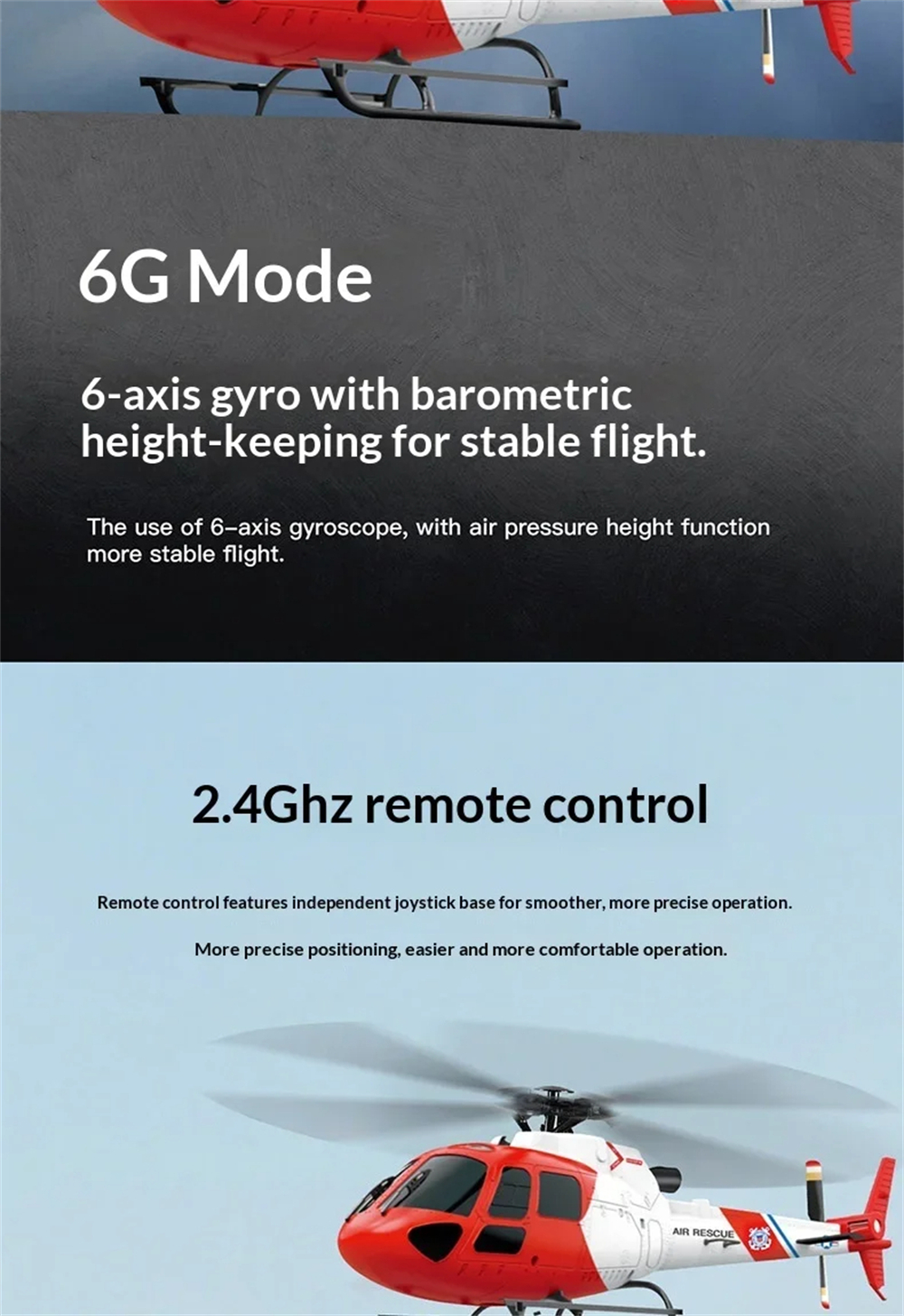 6> 6G mode uses a 6-axis gyroscope for stable flight, especially suitable for beginners.