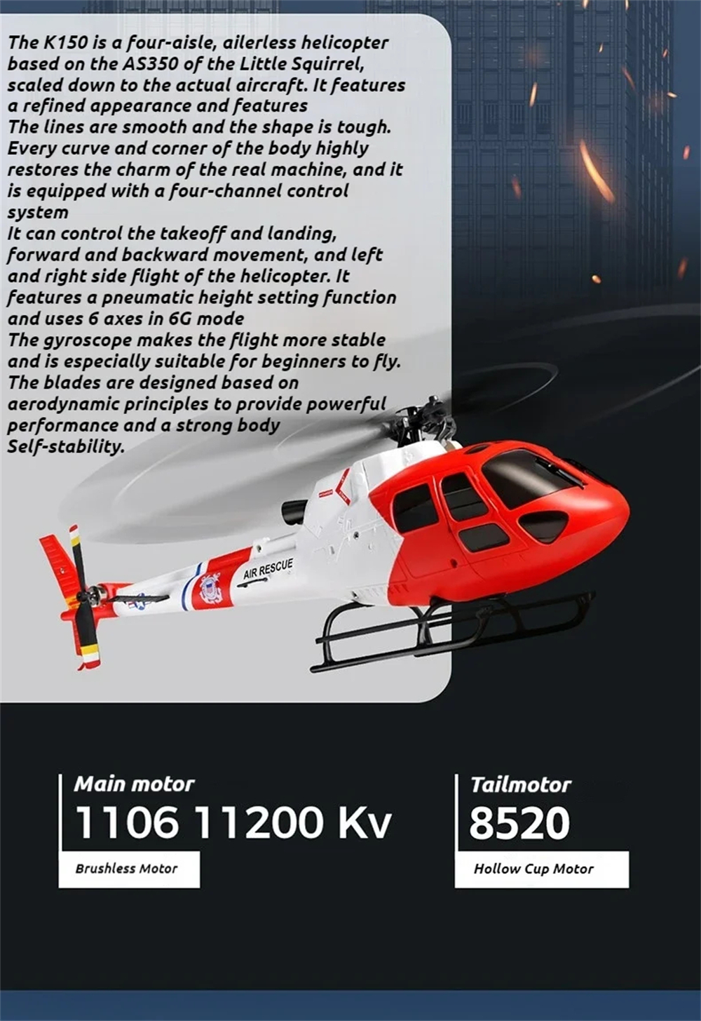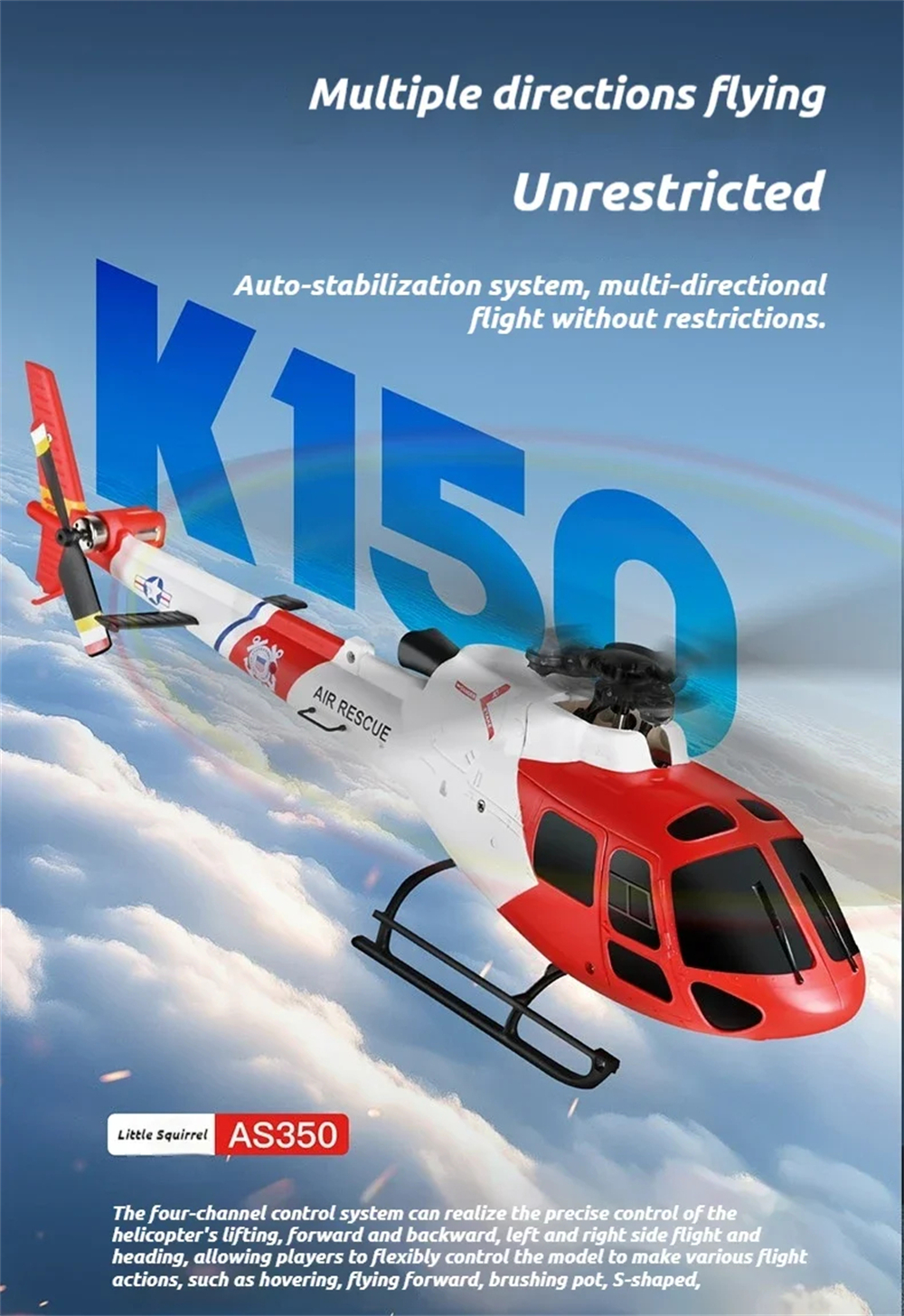 1> Scaled down to the exact proportions of the AS350 (Little Squirrel) helicopter, featuring a detailed appearance and a high-fidelity three-blade, flybarless design.