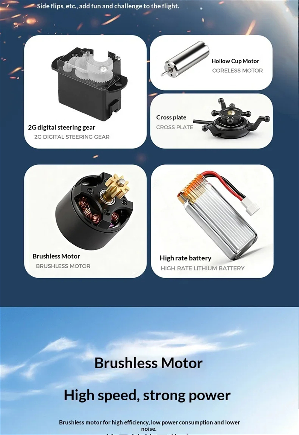 9> Uses high-efficiency 2G digital servos for fast responses, high precision, and accurate centering, resulting in better flight feel and longer lifespan.