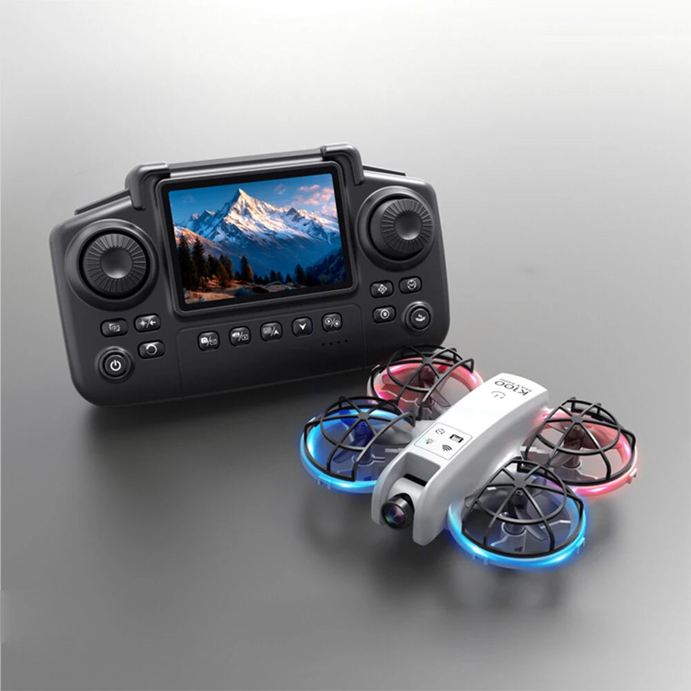 Up/down/forward/backward, left/right turn, sideways flight, LED lights, 360° stunt roll, headless mode, one-button automatic return, altitude hold mode, Optical Flow Positioning, WiFi FPV, dual-lens switchable, screen controller
