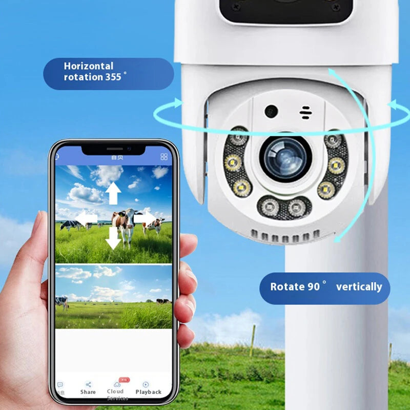 1. 360-degree panoramic coverage with both horizontal (355°) and vertical (90°) rotations.