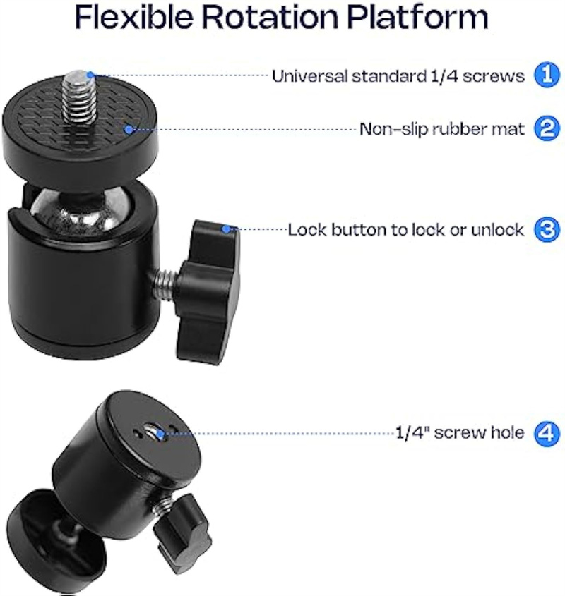 2. Universal compatibility with devices such as projectors, webcams, smartphones, and cameras via the 1/4' screw.