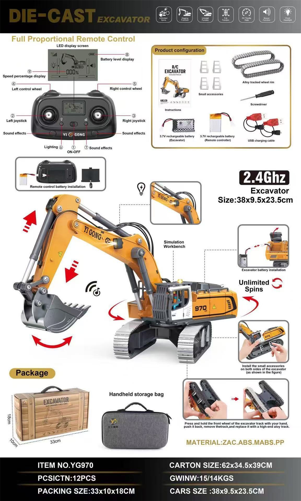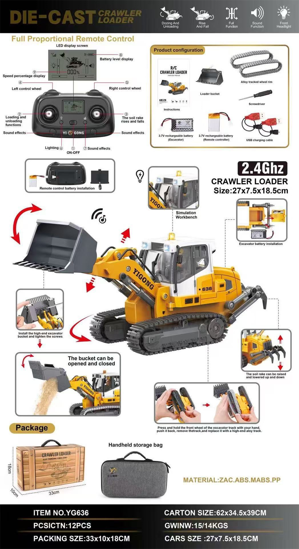 Brand: YI GONG Models:636 RC loader / 970 RC excavator Model:1/50 Speed:3km/h |