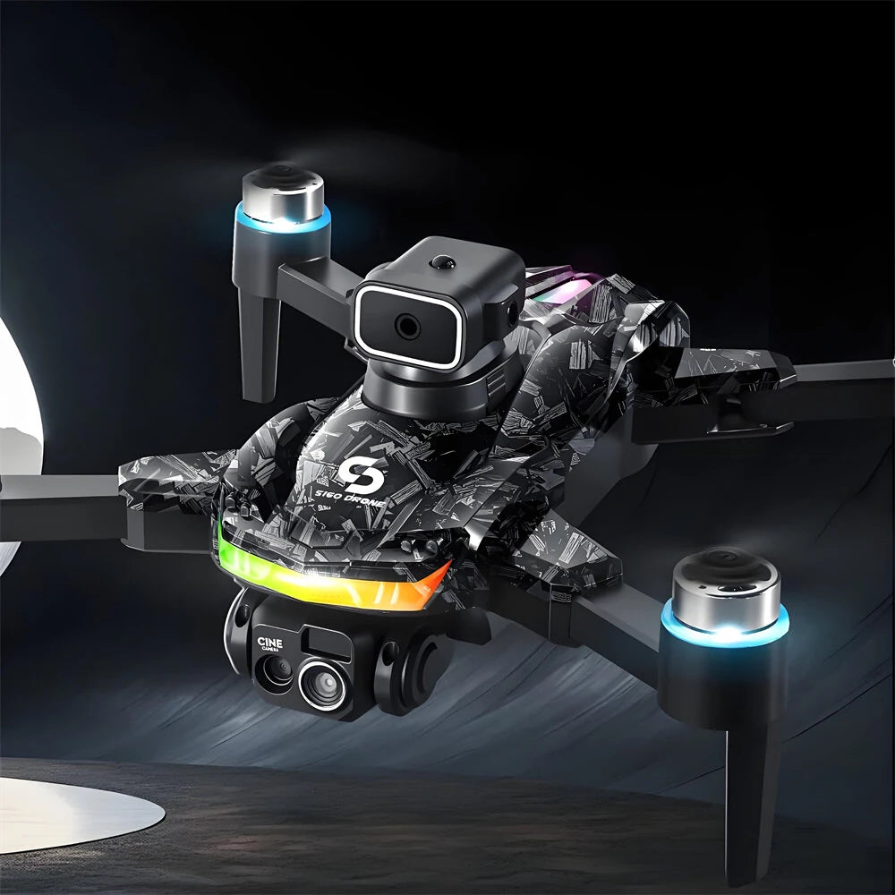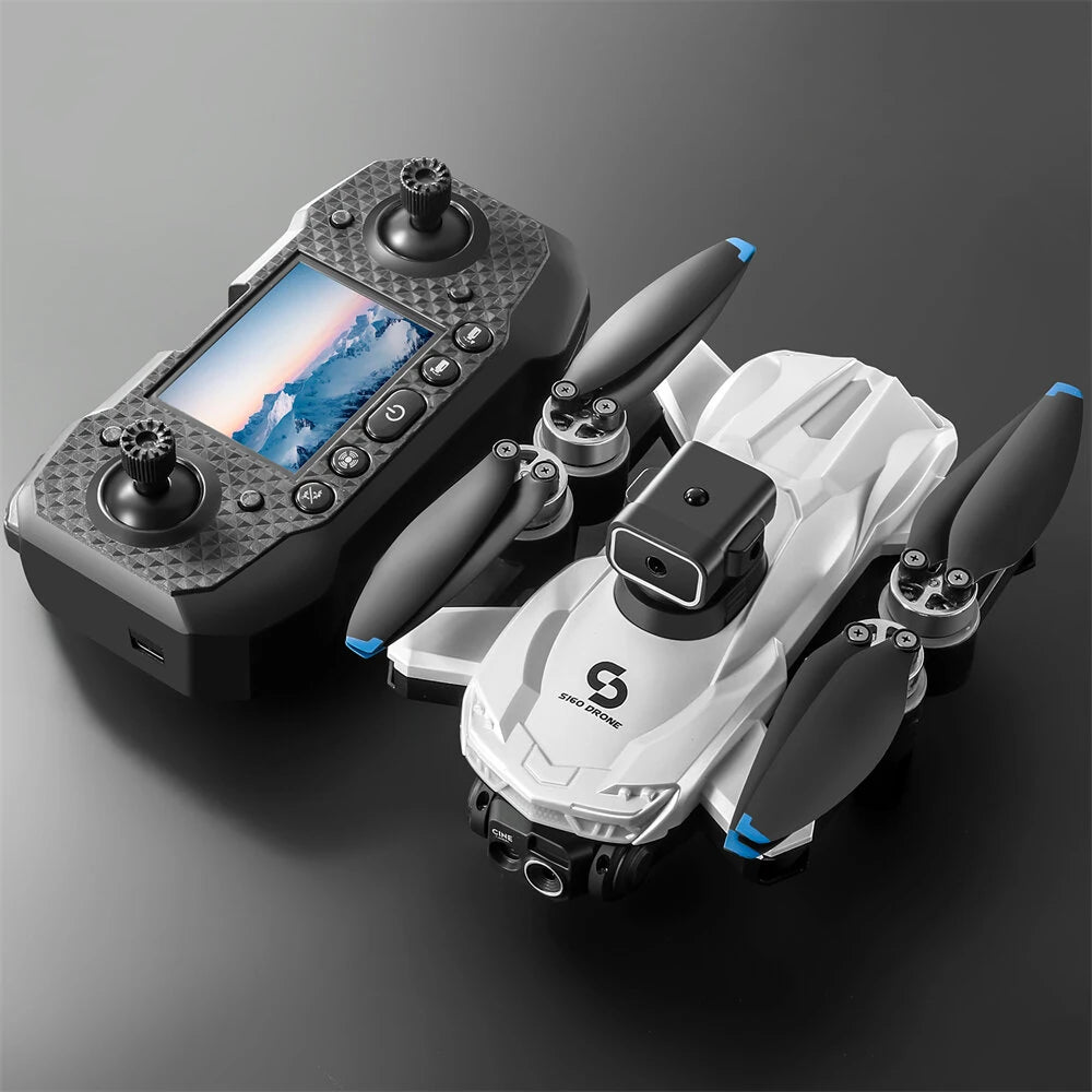YLR/C S160 WiFi FPV with LCD Screen Controller HD Dual Camera Servo Gimbal 360° Obstacle Avoidance Colorful LED Lights Brushless Foldable RC Drone Quadcopter RTF