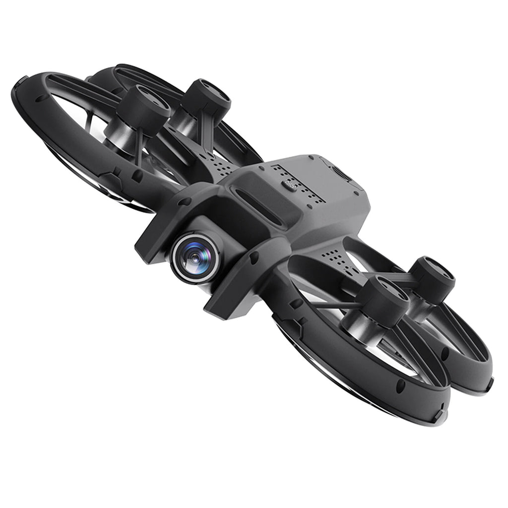 - The drone has a fixed altitude hold mode function, built-in three-sided sensor obstacle avoidance, electric adjustment lens, the lens can achieve 90° upward shooting, optical flow fixed-point positioning, and stable flight.