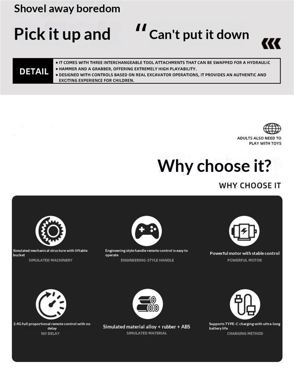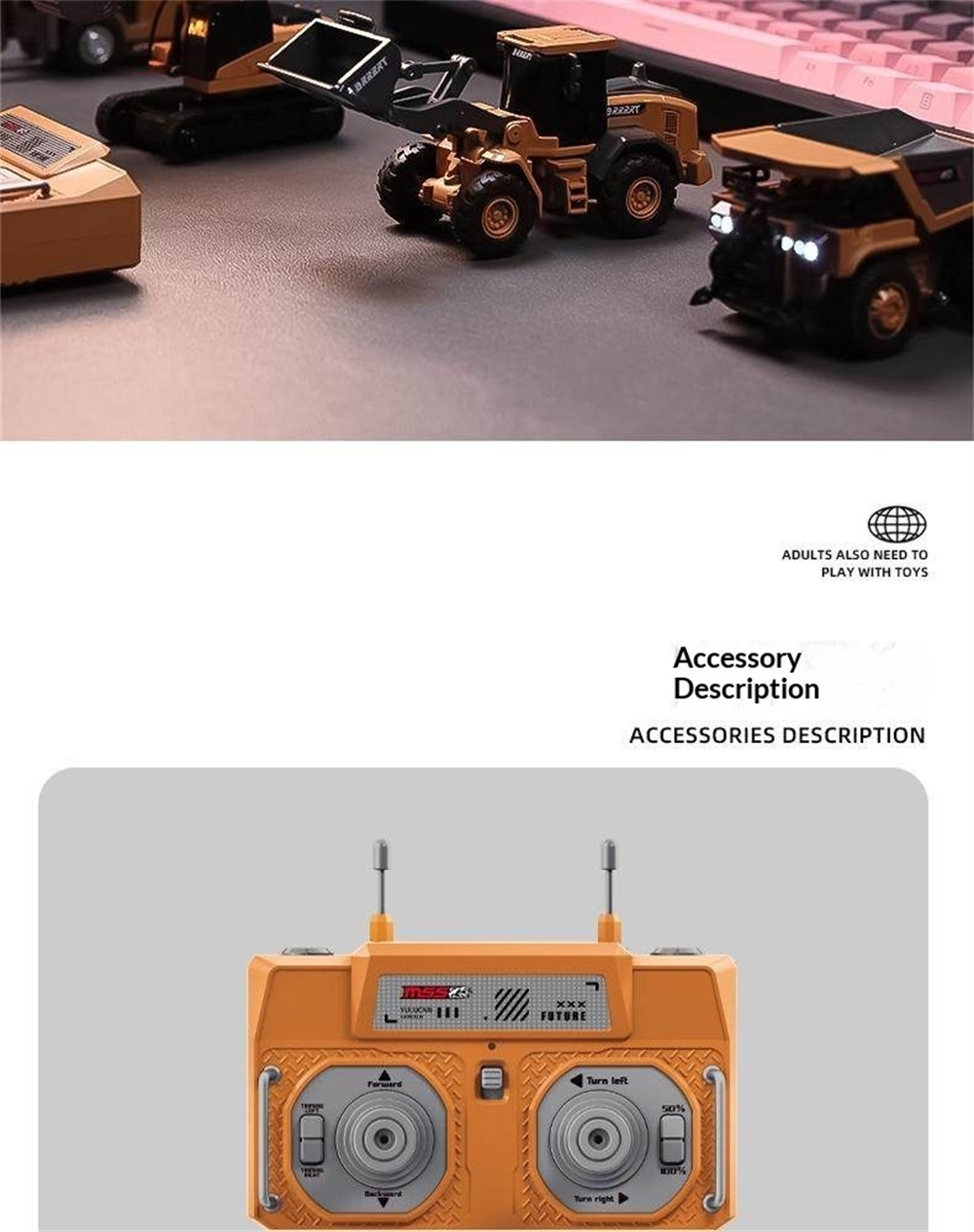 Bulldozer Size:11.7*5*4.3cm Remote Controller Size:9.2*5.5cm |