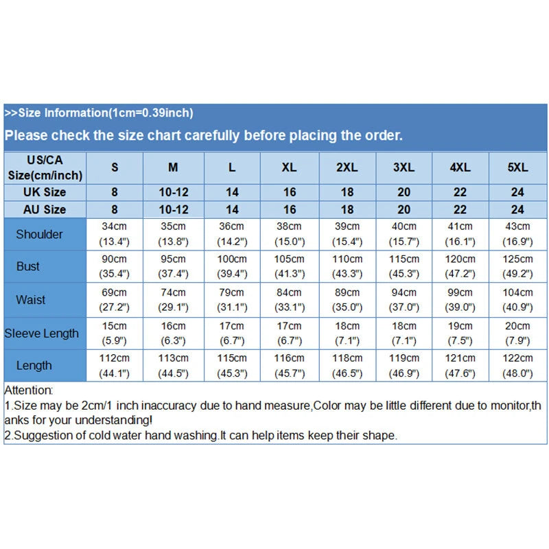 About Size: Size may be 2cm/1inch inaccuracy due to hand measuer. Thsese measurements are meant as a guide to help you select the correct size. Please take your own measurements and choose your size accordingly.