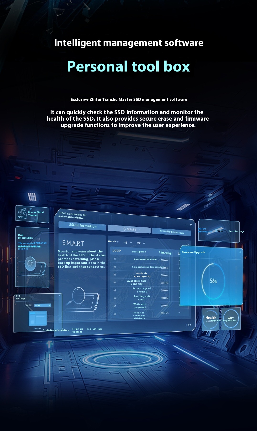 5. Intelligent Management Software: Provides real-time SSD health monitoring, data security features, and upgrade tools for smooth operation.
