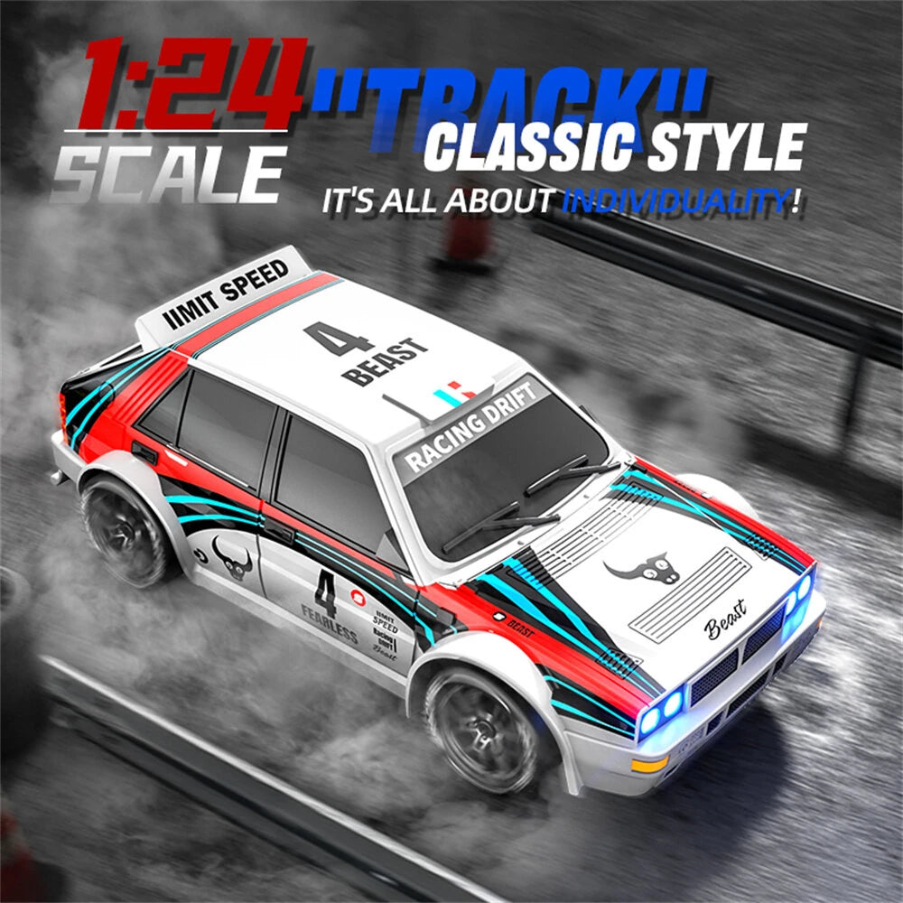 Forward,backward,turn left/right,four wheel drive,replaceable tires,drift,two speeds,front rear is with led light(controllable),ABS body shell